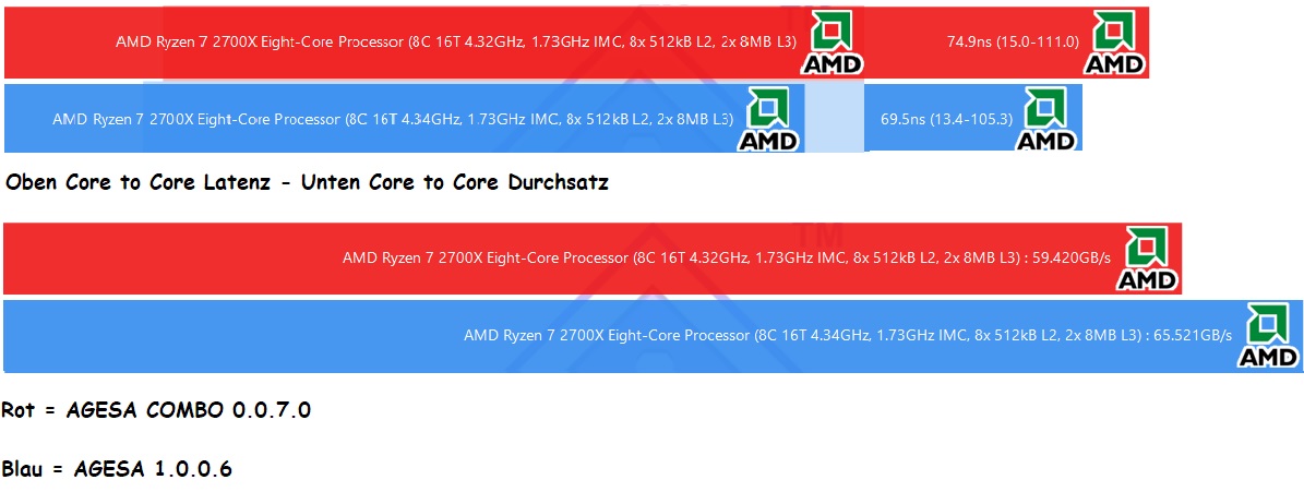 Core to Core Durchsatz bis zu 7GB/s langsamer.