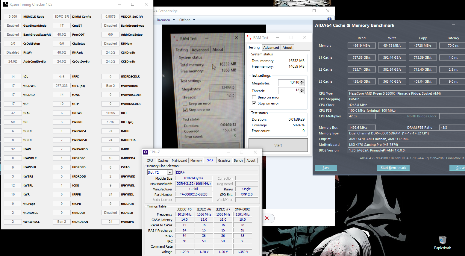 2x 8 GB G Skill Aegis - Micron B Die: Scharfe settings unmöglich gewesen, dafür aber höhere Takraten möglich.
