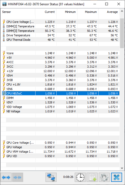 Du hast 81 Values versteckt, mach mal HWinfo Ansicht rückgängig, dann beim Prozessor (Ryzen xxxx) Enhanced