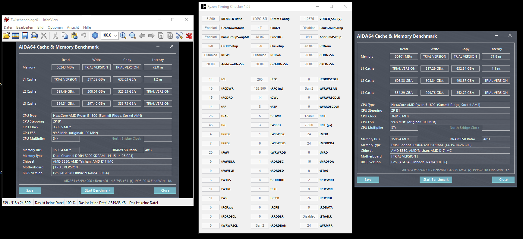 Als Speicher genutzt Ripjaws V-Red F4-3333C-16-8GVR. In den Screens sind ausschliesslich 2 Module verwendet.