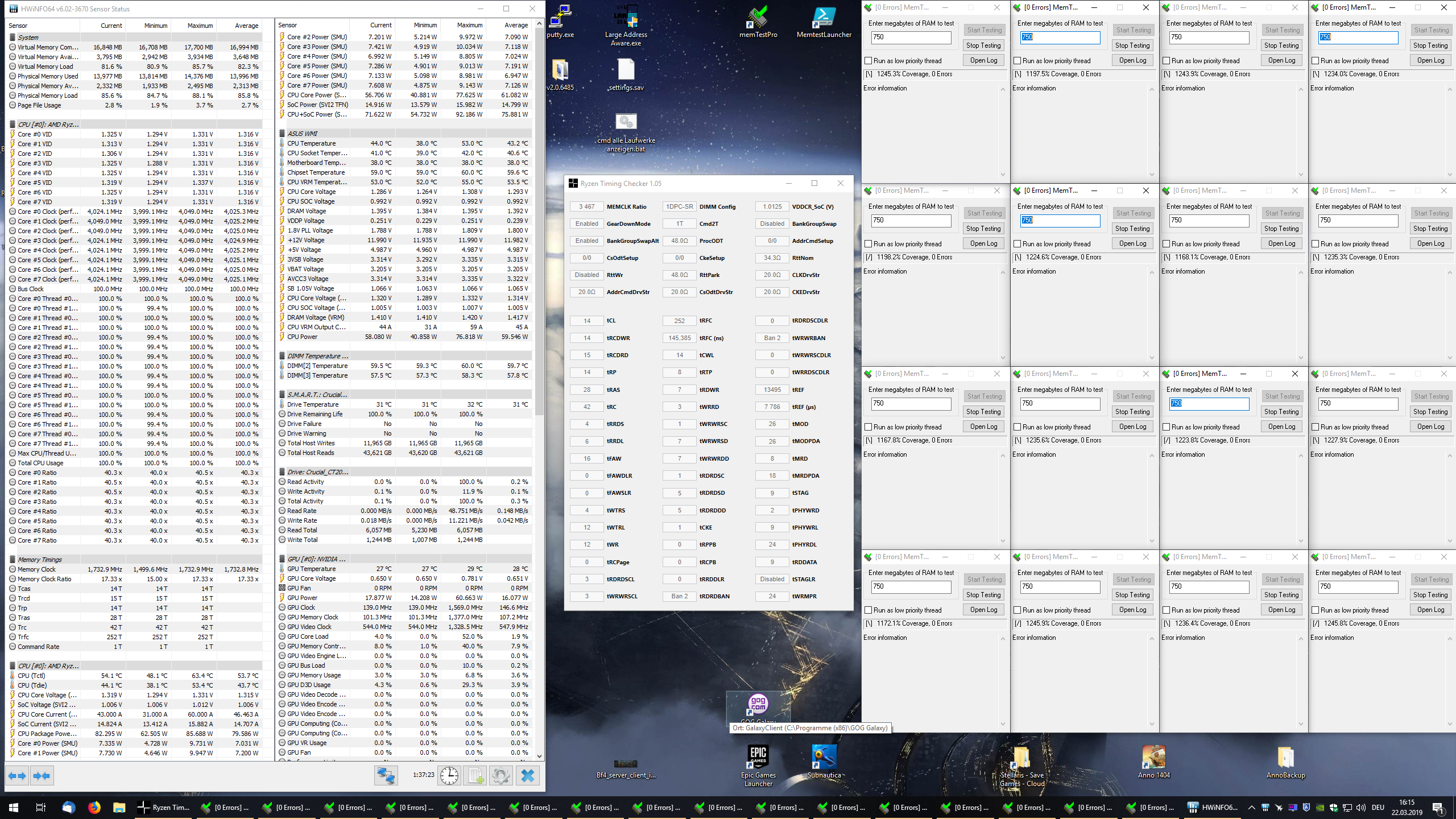 Das bedarf natürlich höherer Spannung, deswegen bin ich auch bei 1.4650v, obwohl es mit weniger scharfen Timings nur 1.42 - 1.435v brauchen würde.