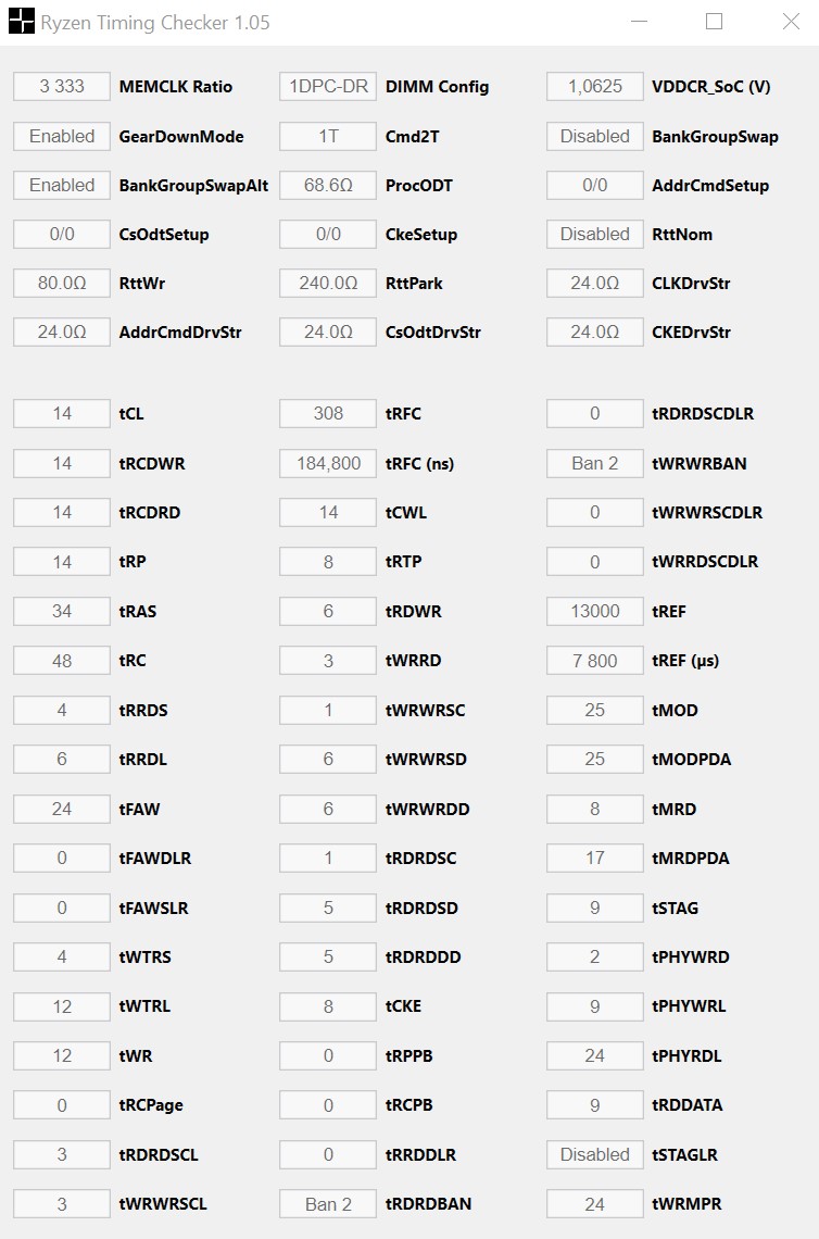 und natürlich Vdimm von 1.42V auf 1.45V, woran es eben hing. Bei der Gelegenheit habe ich übrigens grad nochmal nachgeschaut, ich habe, obwohl ganz frisch produziert (Februar 2019), ein A1 Layout bei meinen Ripjaws 3600Cl16.