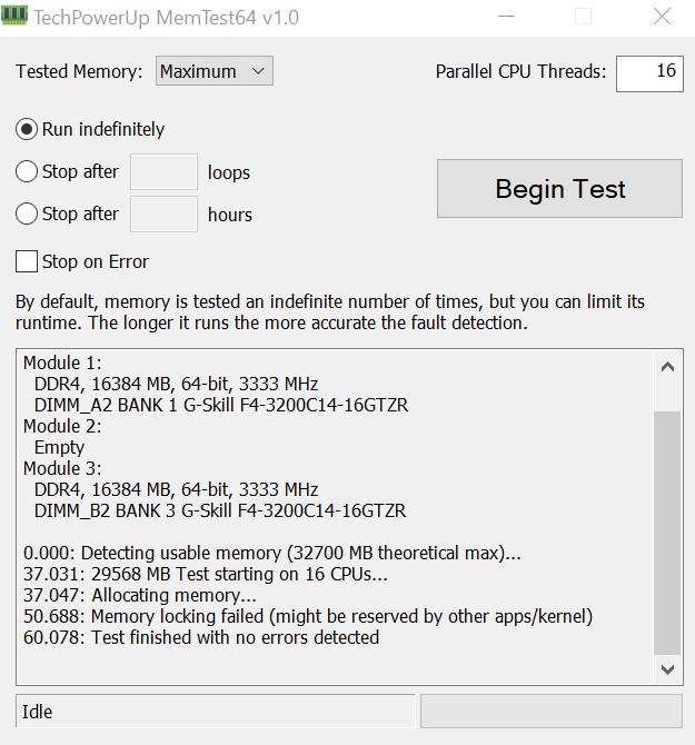 Uuuuuund jetzt wieder ein Memtest Marathon. Gut, dass ich den PC bei dem Wetter kaum brauche - da kann er ruhig rumrödeln.