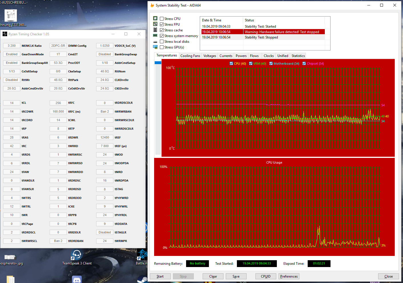 Mit ProcODT 48 hatte ich zwei Rtt Kombinationen, wo ich in Aida auf 1:30 bis 2h gekommen bin, bevor der Test versagt hat. Mit ProcODT 53 hab ich erst eine Kombination gefunden, welche über eine Stunde lief.