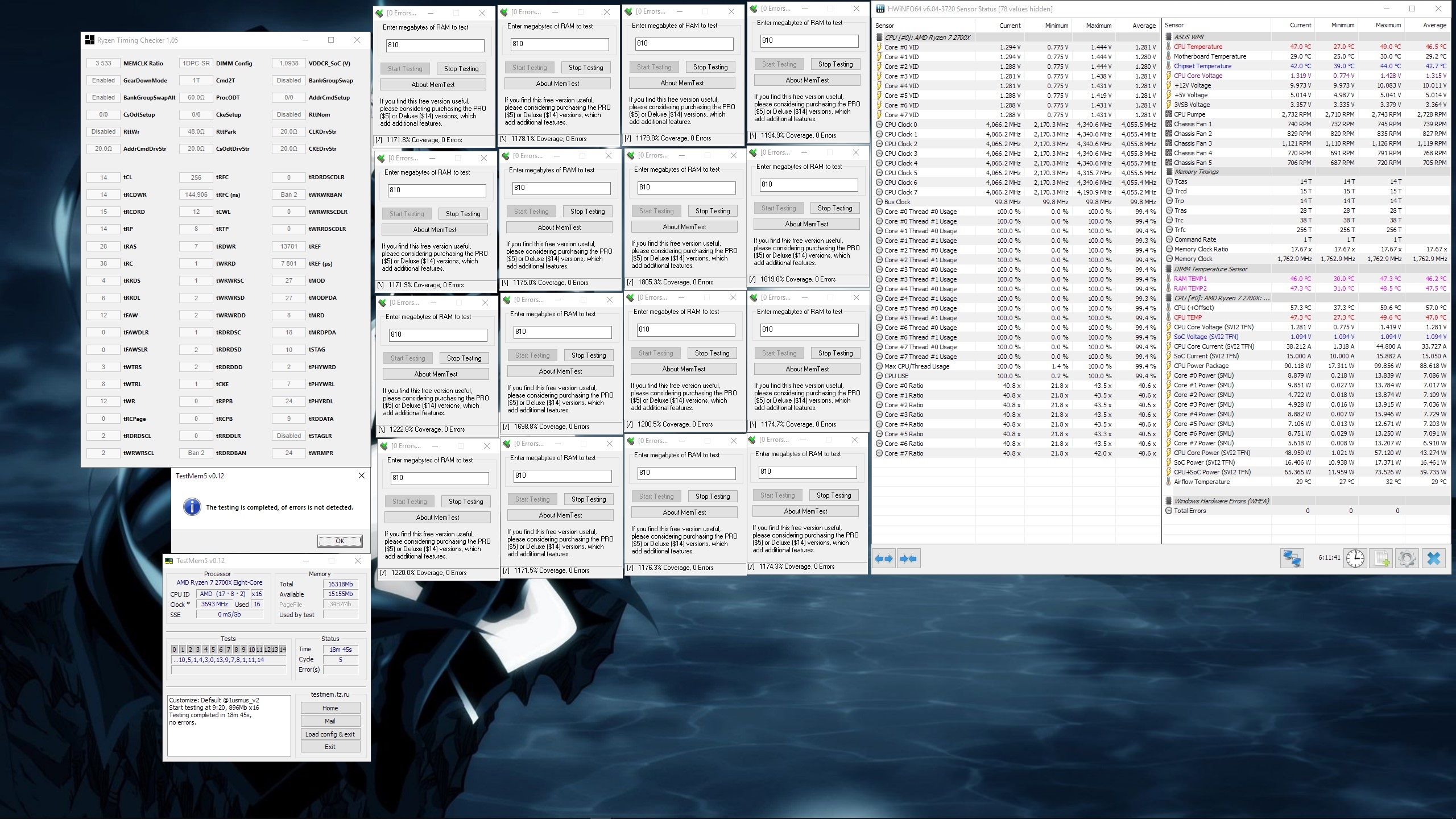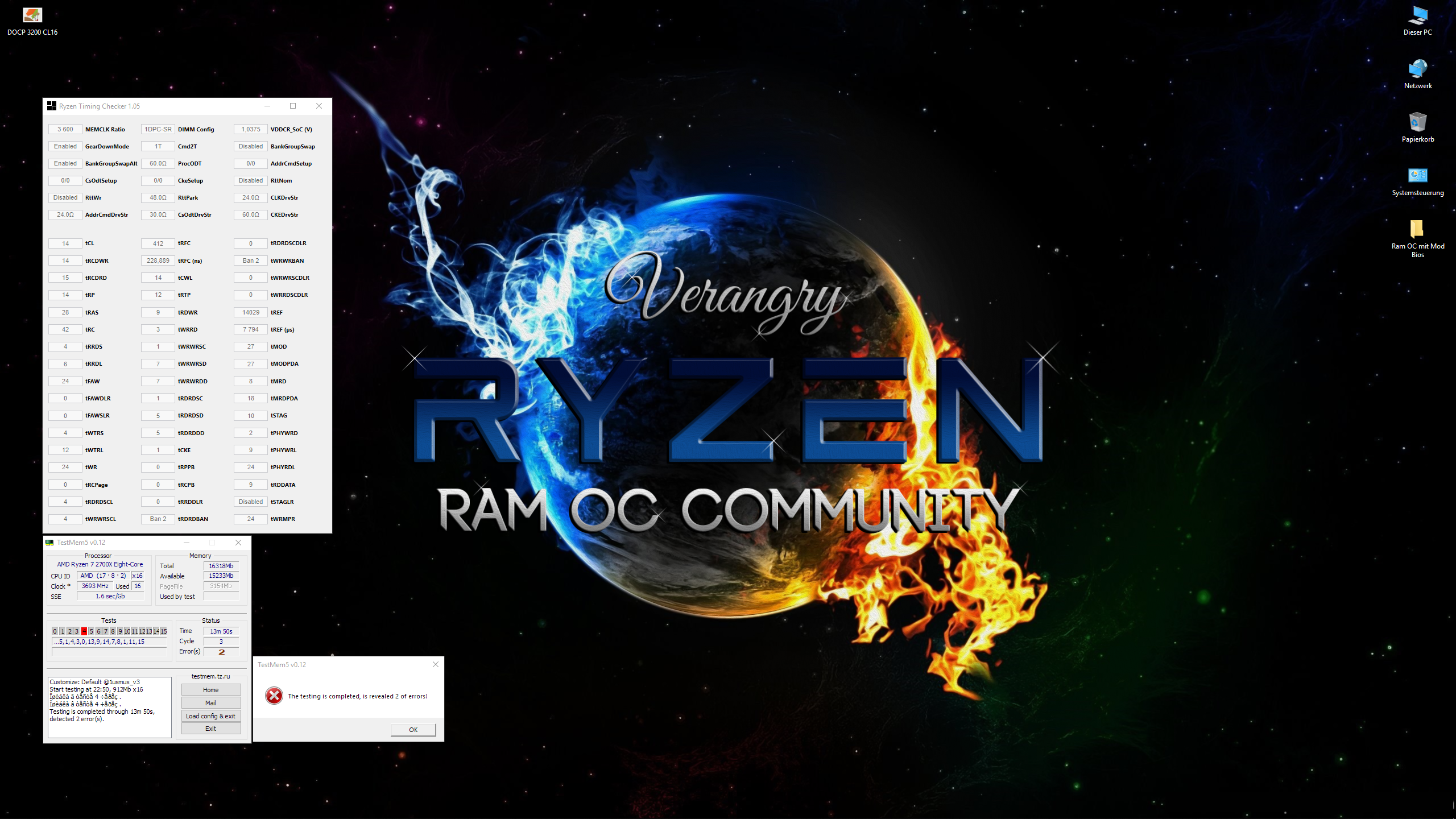 Sollten beide Tests ohne Fehler sein, dann kannst du deine alltags Programme nutzen, und wenn dort dann immer noch Fehler kommen, obwohl die Memtests keine Fehler bringen, kann man eventuell mit der Spannung noch weiter hoch.