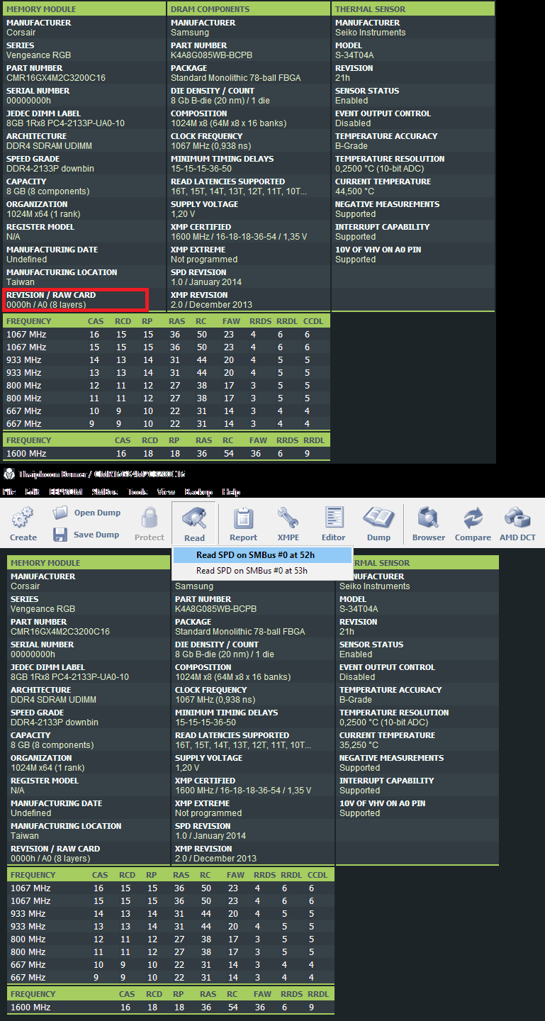Also wenn ich mir die "DRAM Timing PARAMETERS" aus deinem Screenshot anschaue, sind diese um 0.250ns "langsamer" als bei meinen in bezug auf die tRCD und tRC, heißt, du musst mit deinen Timings etwas höher.
