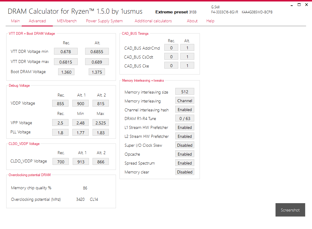 Verstehe ich auch nicht. Bei single rank wurde mir früher immer empfohlen BGS zu deaktivieren und BGSalt einzuschalten. Jetzt habe ich beides deaktiviert wie vom calculator empfohlen und in Aida ist die Performance drastisch gesunken.Dragonheart69 schrieb:Wie jetzt....nun soll man bei Dual Rank sowohl BankGroupSwap als auch BankGroupSwapAlt deaktivieren.....