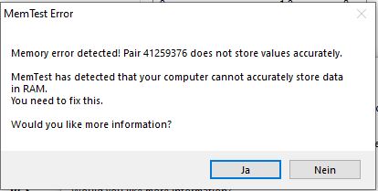 Mit 17 und 1.41V gabs die ersten 20 Sekunden keine Fehler, dann aber schon. Inkl. Bluescreen.MK one schrieb:tRCDRD zu niedrig , setz das mal auf 17 , funktioniert das , mit CL14 versuchen