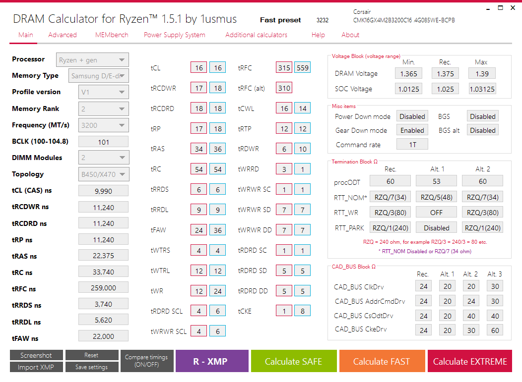 Im Calculator bitte Micron auswählen. Bei den Widerständen RttNom auf 48 (RZQ/5) und Proc eben, wie oben geschrieben.
