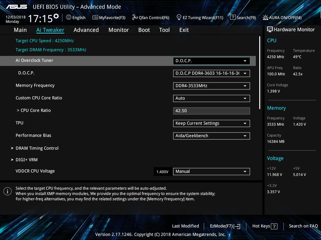 Aktuell laufen 4,2Ghz@1,375v und RAM 1,42v und vsoc 1,05v. Mal schauen, wie es laufen wird, aber Karhu Lauf gibt es erst morgen, heute pack ich nur noch den tm5.