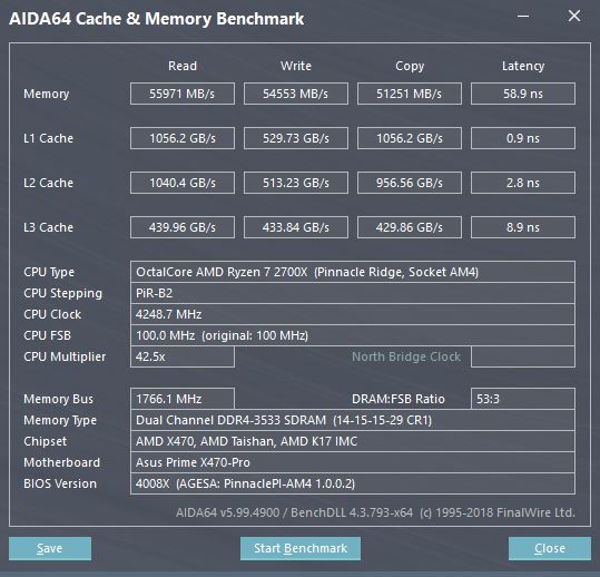 Die Latenzen sind mega stabil, was bei anderen settings teilweise um 0,5-1ns gesprungen ist, bewegt sich jetzt im Bereich von 0,2ns (58,8-59,0ns). Ich habe mal die Mitte rausgefischt: