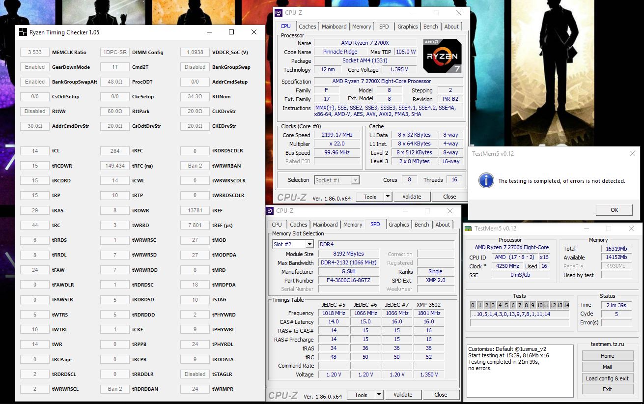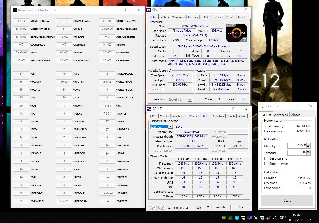 Edit: Sieht bisher ganz gut aus, auch mit aktiv zocken. Hatte zwar einen Absturz, aber der hatte laut memory dump nur mal wieder was mir der wifi card zutun von Asus, die auch mit 2133Mhz das Problem macht