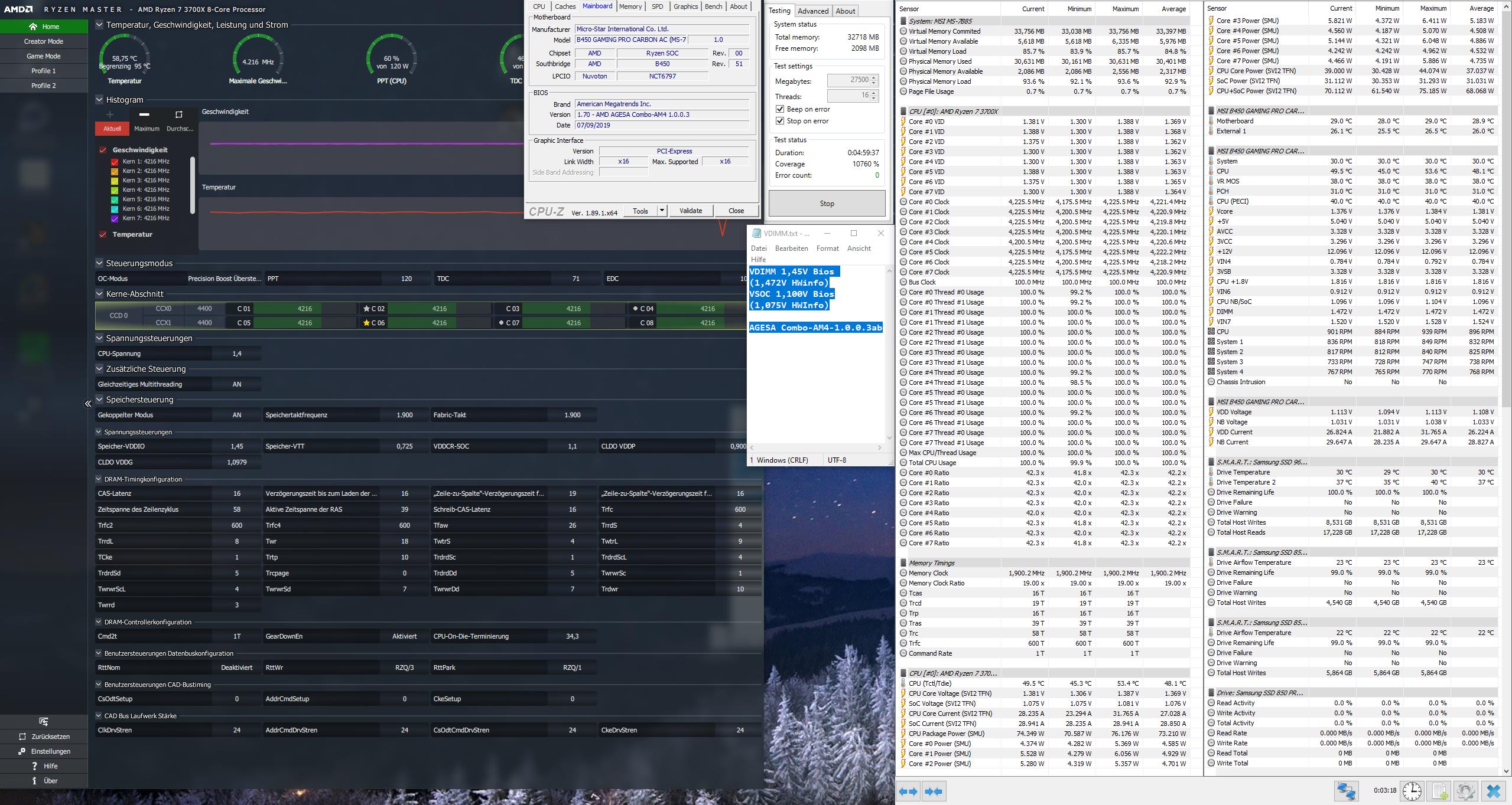 RAM bei 3733CL14 und sehr strammen subtimings @ 1.537V^^