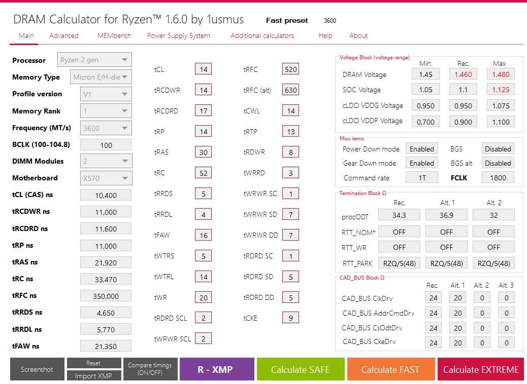 Werte sind identisch mit den SAFE Settings außer PowerDown auf Disabled. Voltage habe ich von 1,39 bis 1,42 probiert.
