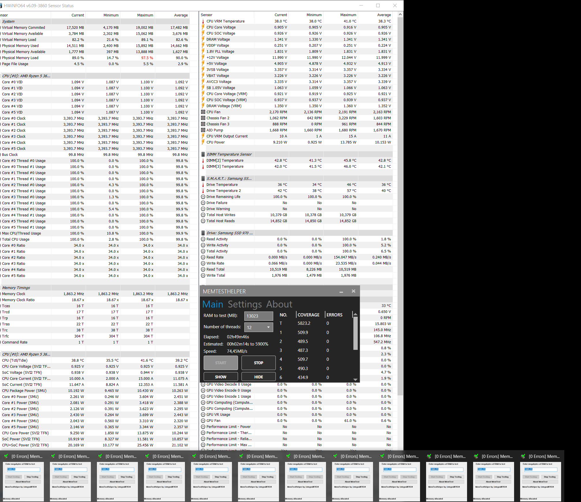 Ich bekomme die RAMs zwar mit 3333 Mhz zwar zum laufen, aber egal welche Spannung, ich bekomme schon im Test unter 100% Fehler. Im Aida64 aber teils selbst nach 60 Min. keine Fehler.