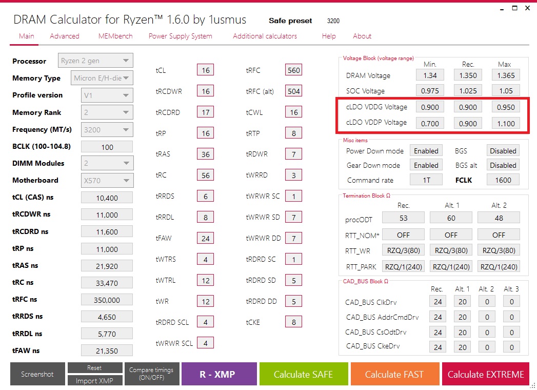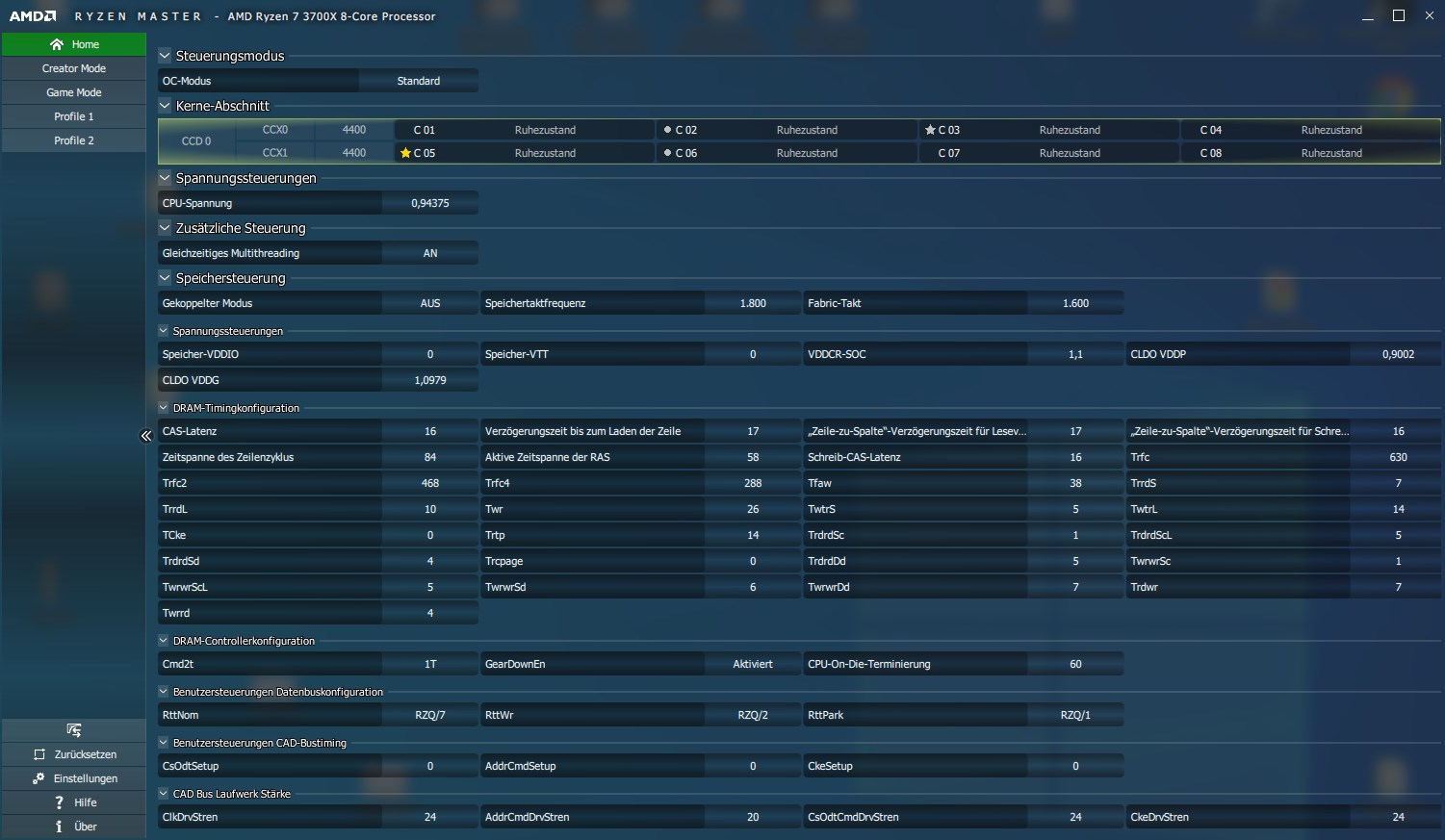 Jetzt habe ich einfach mal die "Fast"-Werte vom Calculator für 3200 genommen. Eingestellt habe ich nur die "Hauptwerte" für CL14. Den Rest habe ich auf Auto gelassen. Bislang sieht es gut aus.