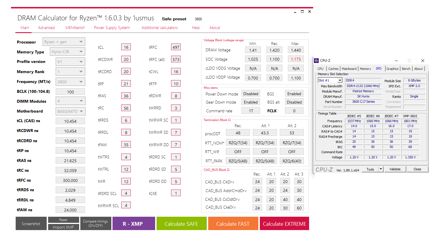 - DRAM Voltage: 1.36V - 1.38V, mehr hat bei mir nie wirklich geholen, war sogar auf 1.45-1.5V. AUch bei Settings, die ich bei Karhu jenseits der 1000% hatte, hat mehr Spannung nix gebracht. Irgendwann ist er immer abgestürtzt.