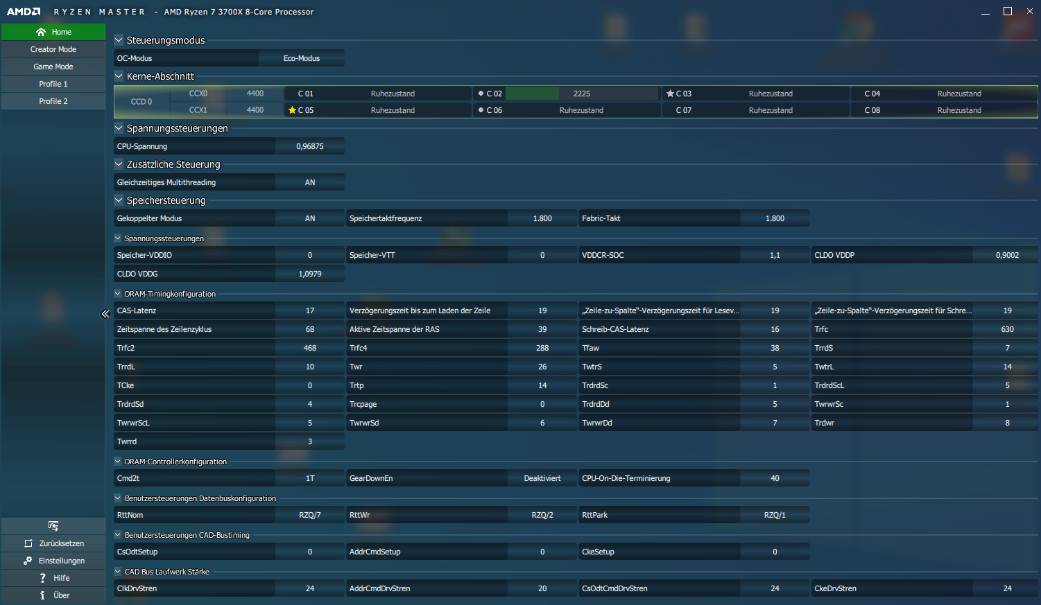 - Nur Haupttimings einstellen, also bspw. 16-18-18-36 bei 3200Mhz. Ich probier jetzt, wo ich mich gewissermaßen mit 3200Mhz abgefunden habe, mit 14-17-18-36 und taste mich langsam vor.
