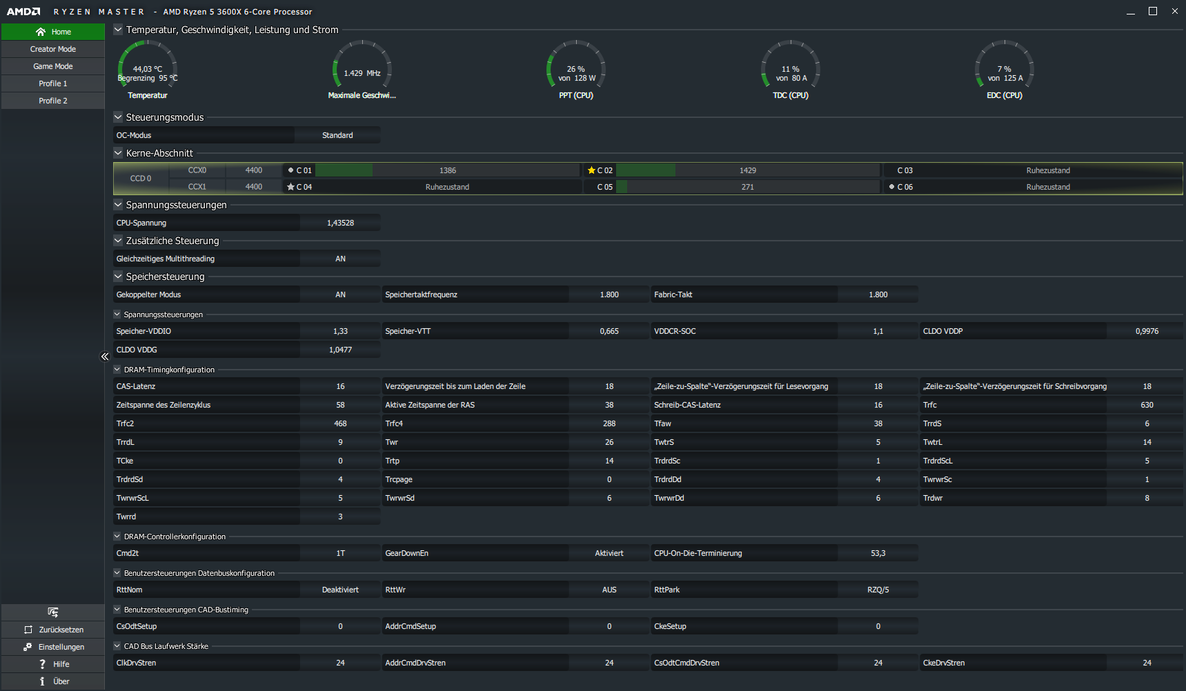 Mit dem Fabric habe ich wohl etwas Glück, macht überhaupt keine Mucken auf 1900MHz. Eine Stufe höher mag er aber nicht mehr.