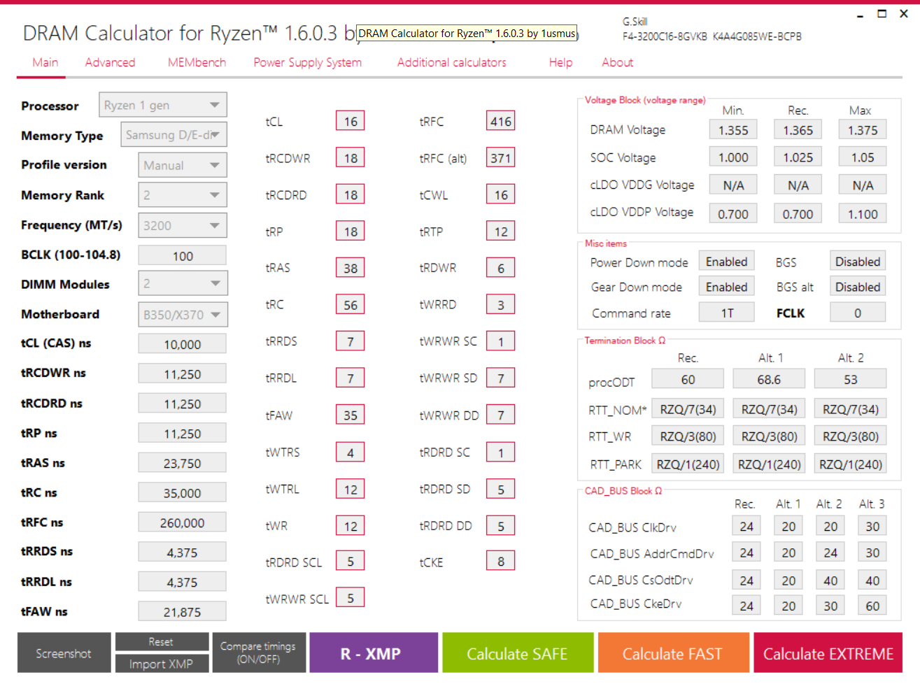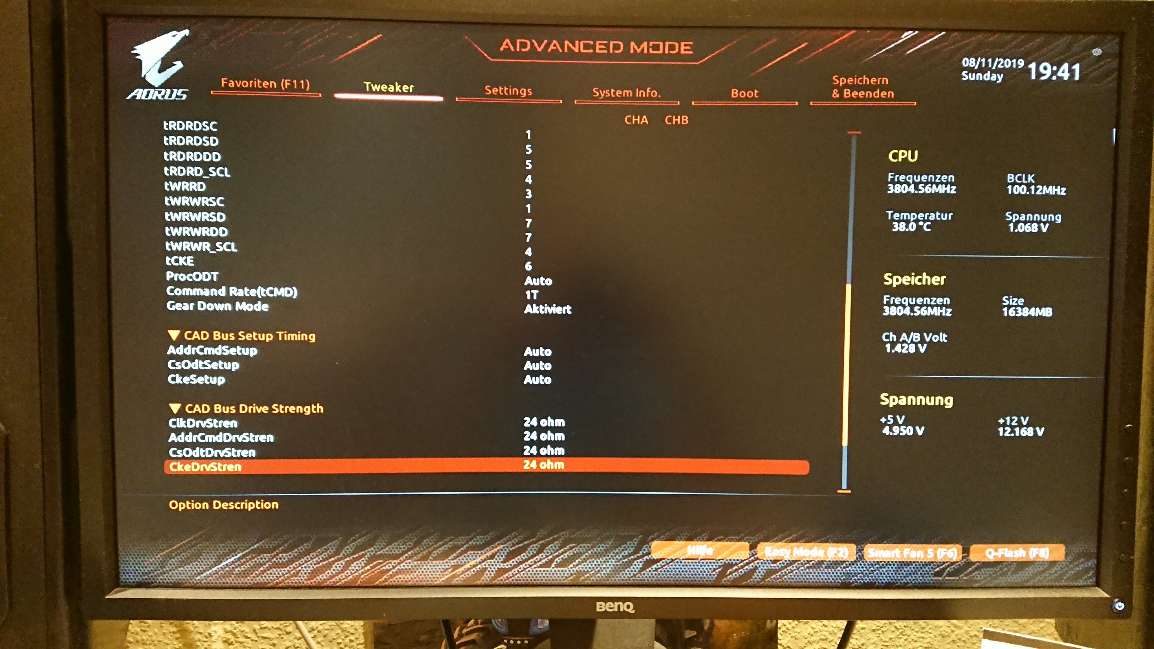 Für 2x16 würde ich vermuten, dass du nicht mit den Cad Bus Werten auf 24 hinkommst....da würde ich etwas anderes wählen....30 20 40 40 oder 40 24 40 40....ich habe aber keine Erfahrung mit Micron...kann für dich auch ganz falsch sein....laut RAM OC Anleitung soll der zweite Wert wohl auch höher gesetzt werden...bei mir muss er eher niedriger.silent2k schrieb:erbaut sind 2x 16 GB Crucial Ballistix Sport LT 3000 CL15