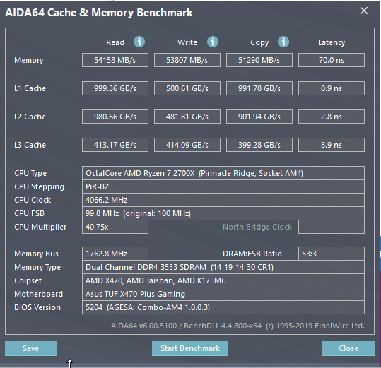 PBO war aktiv, aber das hat auch keinen Einfluss. Sosnst ist alles @Stock außer RAM OC.Enurian schrieb:Write ist normal, dir fehlen aber bei read und copy etwa 10%. Ist das reproduzierbar so schlecht?