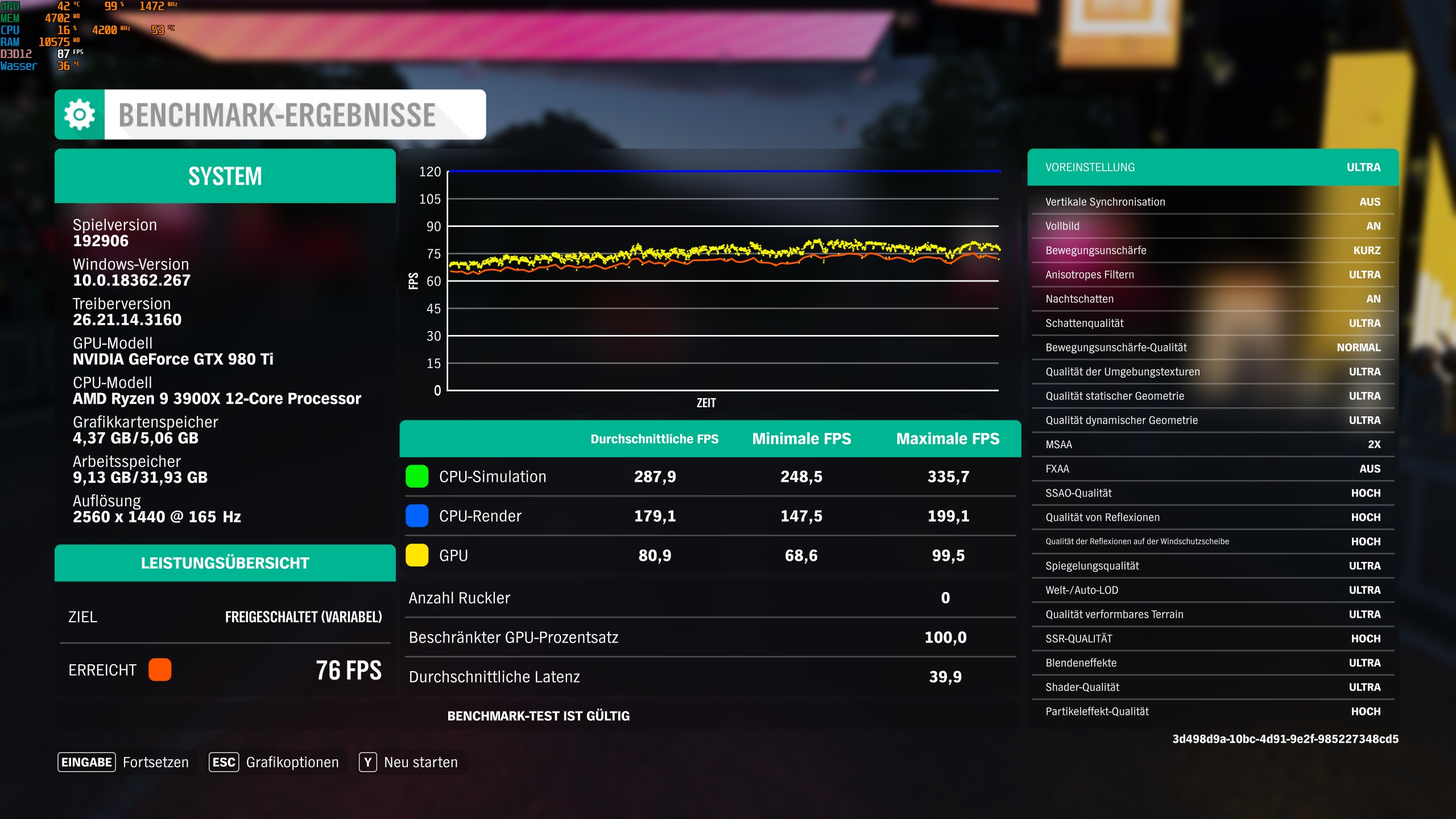 6 Kerne reichen nicht aus in dem Game um mit dem 3700X/3900X mitzuhalten, soweit ich das aber gesehen habe sind der 3700X und 3900X auf ähnlichem Niveau wenn beide optimiert sind, heißt also mir fehlen 2 Kerne bzw 4 Threads