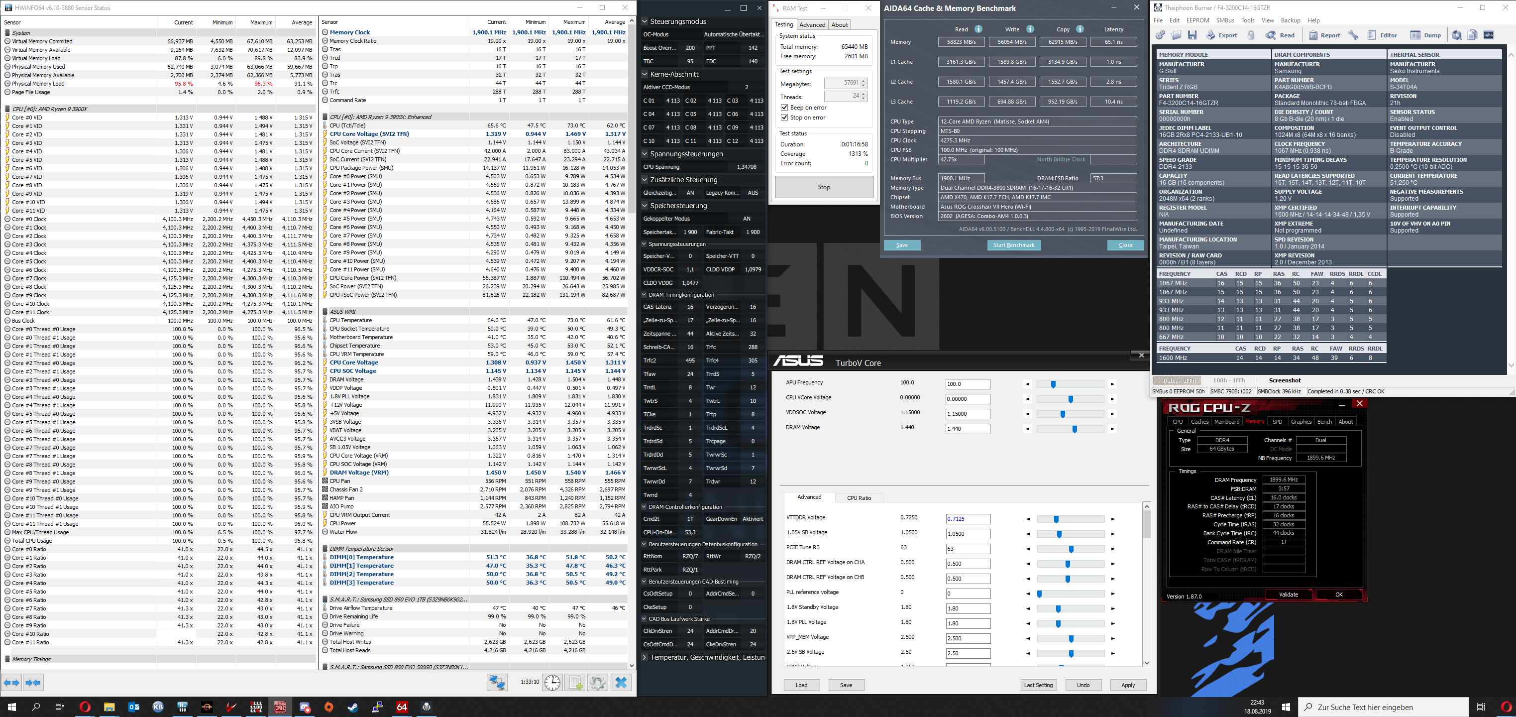 Hatte bei meinem allerersten Versuch den Takt zu erhöhen kurz nen Karhu Test gemacht und mich nach 500% entschieden, es erstmal mit anderen Widerständen und Spannungen zu versuchen, um das Neustart Problem zu beheben und mich danach den Timings etc zu widmen, um die Kiste einwandfrei stabil zu bekommen.