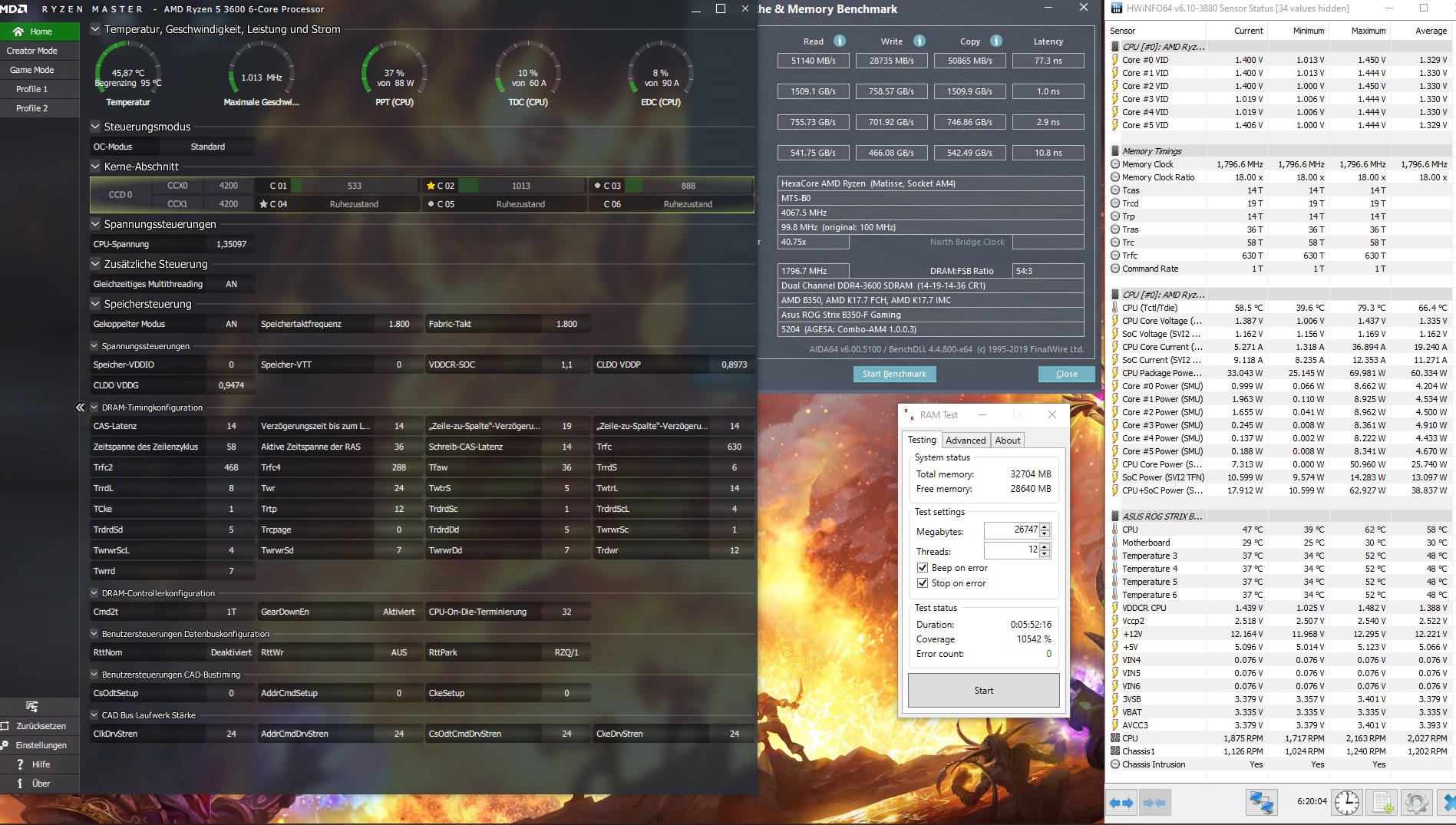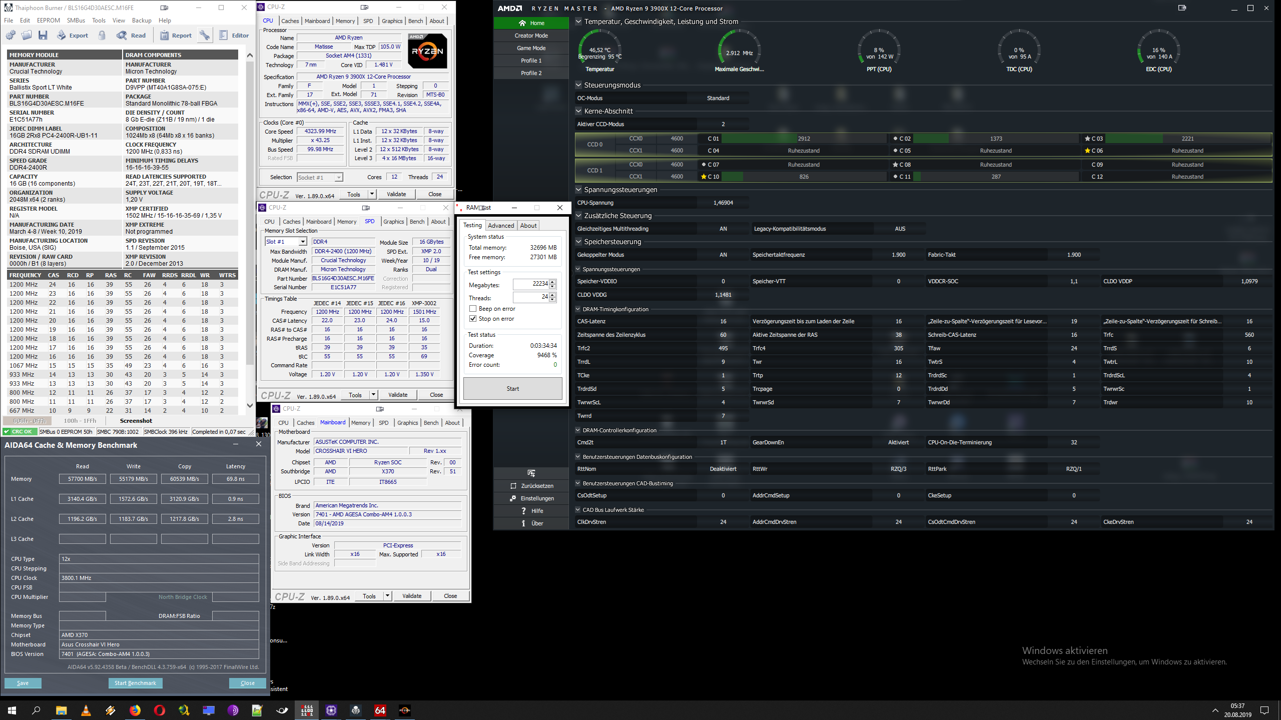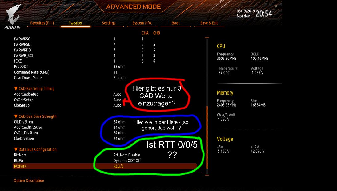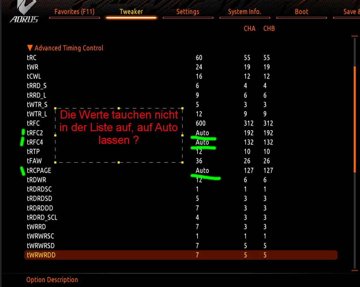 bei dem 3600/3400er Versuch habe ich die Safe-Timings vom Calculator genommen, die mir für 3600 vorgeschlagen wurden: 16-18-19-20-36-56-471 bzw 445 bei 3400, der Rest der Timings war auf Auto...