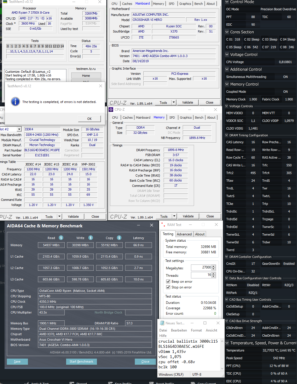 Im Allgemeinen laufen die Matisse CPUs aber mit ziemlich wenig SOC Spannung. Für die Ballistix könnte ich mir auch was im Bereich von 1,0 bis 1,05v vorstellen. Oder man gibt gleich 1,1v drauf getreu dem Motto schadet nicht...