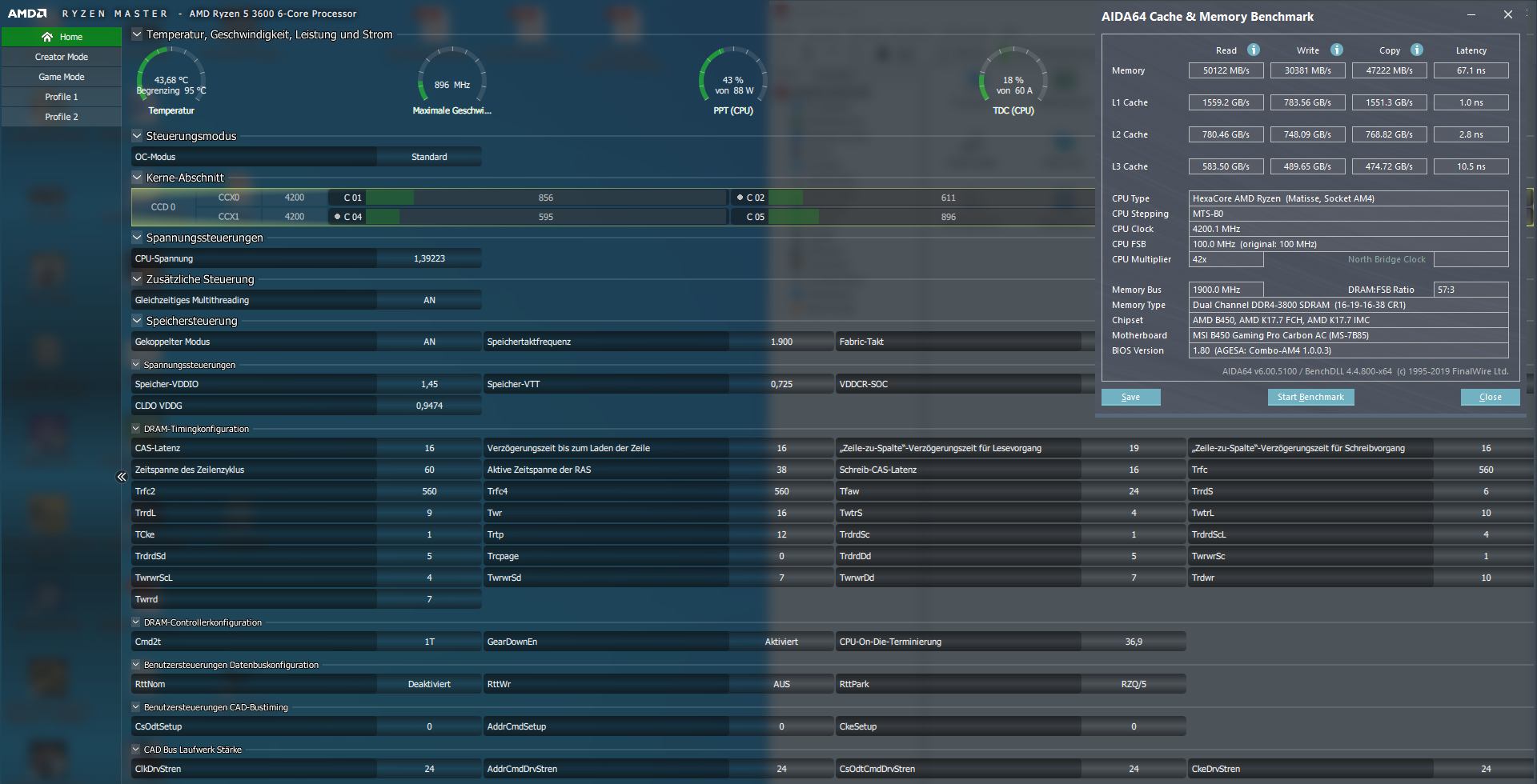 DRAM Calculator sagt:cm87 schrieb:Klar ist OC mit dem Kit möglich. Hynix CJR sind sogar gut. Ich hab die 3600cl19er auf 3800cl16 gebracht. Da müsste bei deinen ja mehr Luft drin sein.