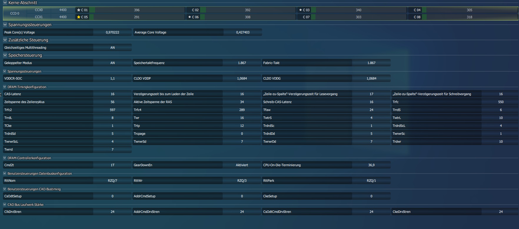 Inspiriert von faceOff und seine ergebnisse, habe ich mein Ballistix LT 3200CL16 2x16GB kit nun genau so eingestellt: