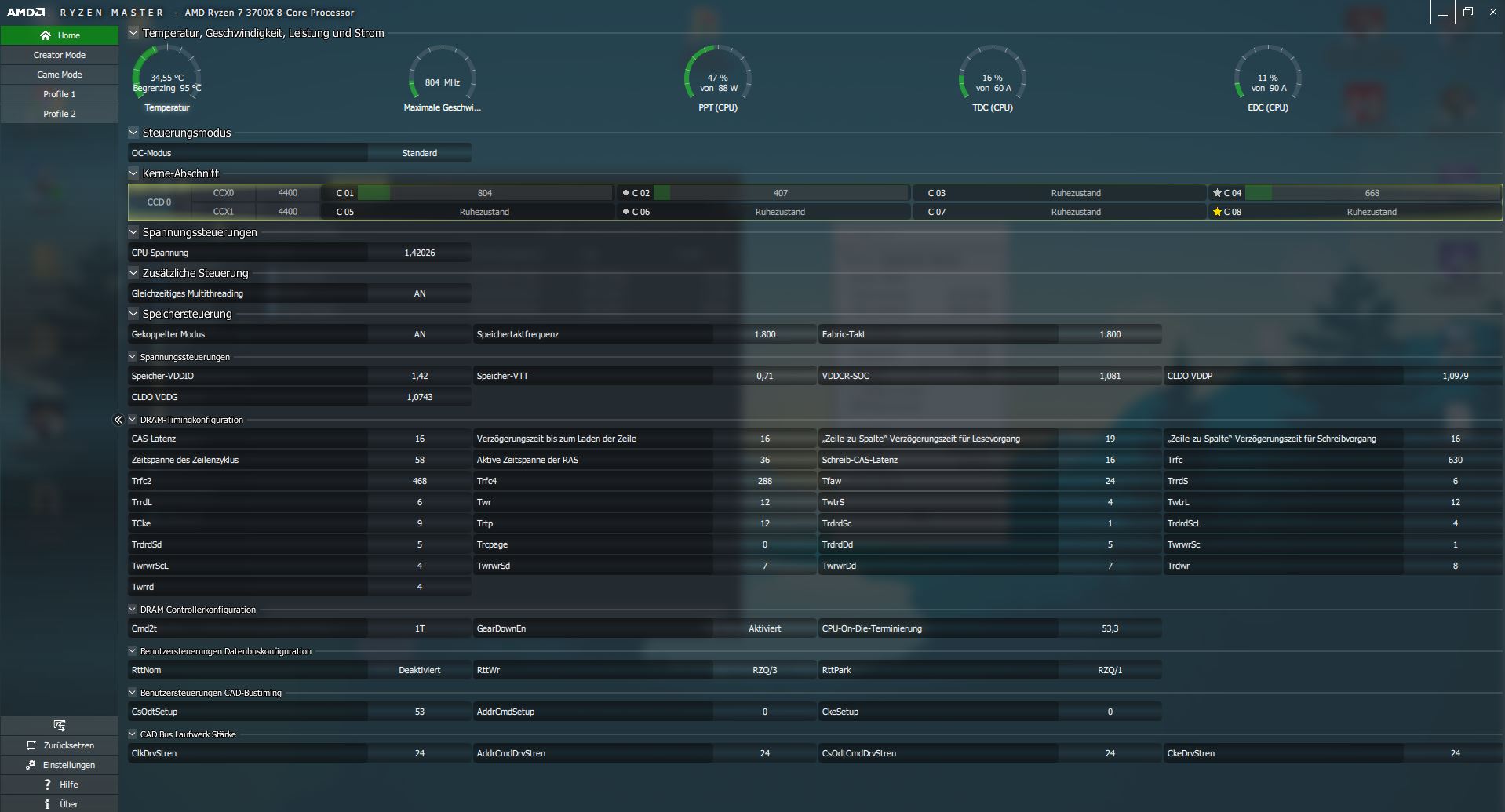 Die anderen Subtimings und Einstellungen lasse ich aktuell noch unangetastet. Erst wenn das so mit den aus dem Dram Cal gelieferten Werten läuft übernehme ich auch die Subtimings.