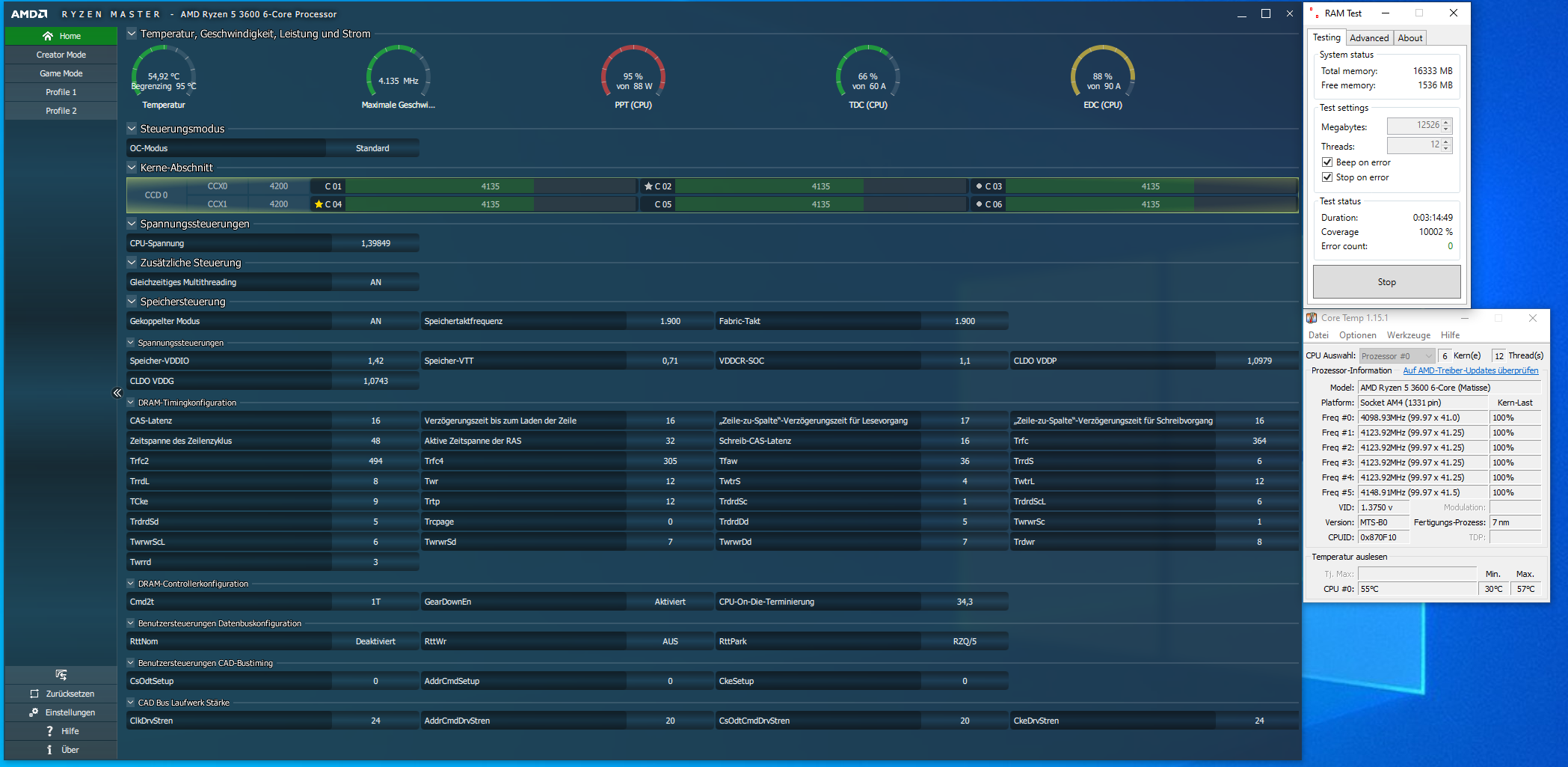 @Destyran: Auf dem Bild auf dem auch Ryzen Master zu sehen ist, siehst Du welche Spannung an der CPU anliegt, ich habe den Screenshot gemacht, als der Test noch lief.