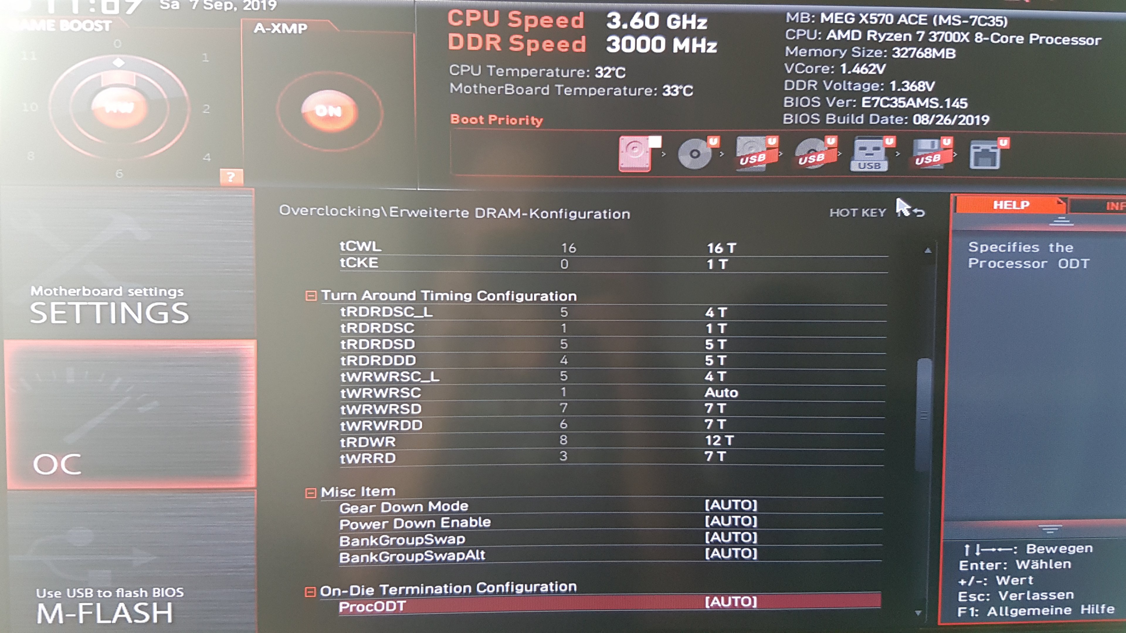 Mit den Einstellungen zu 3733Mhz CL16 und IF auf 1866MHz läuft das System erstmal. Ich mache gerade den RAM-Test. Anbei mal die Screens der ganzen Tools. Ich hoffe das passt soweit.ZeroCoolRiddler schrieb:Liegt weniger am Board, eher macht die CPU keine 1900 FCLK mit. Dann auf 3733.