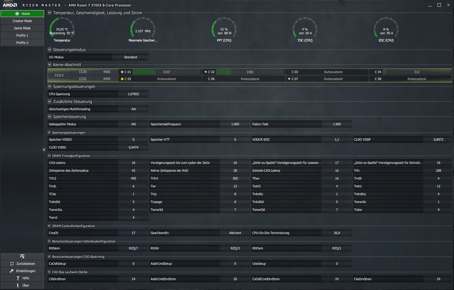 Ja da hatte @ZeroCoolRiddler gesagt, dass es sich um Auslesefehler handelt, da cLDO VDDG maximal = VSoc sein kann, aber eigentlich immer drunter liegt. Ryzen Master hat da wohl ein Problem.Dragonheart69 schrieb:Wenn ich vddg auf Auto lasse,stellt das C7H 1,15 V ein.