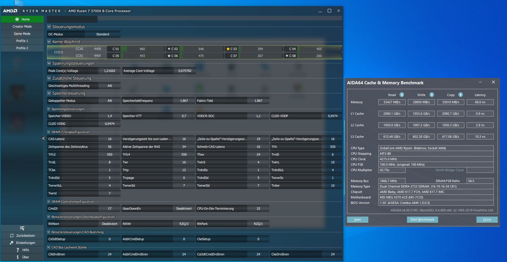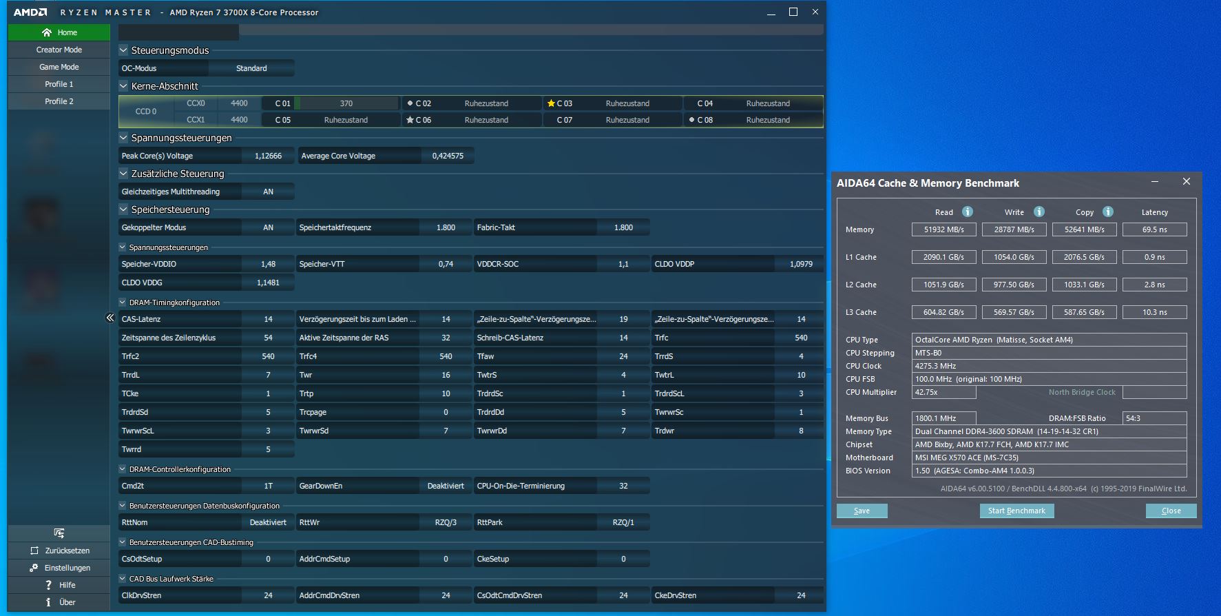 Ram ist von 3000Mhz CL15 auf 3800Mhz CL16 übertaktet.