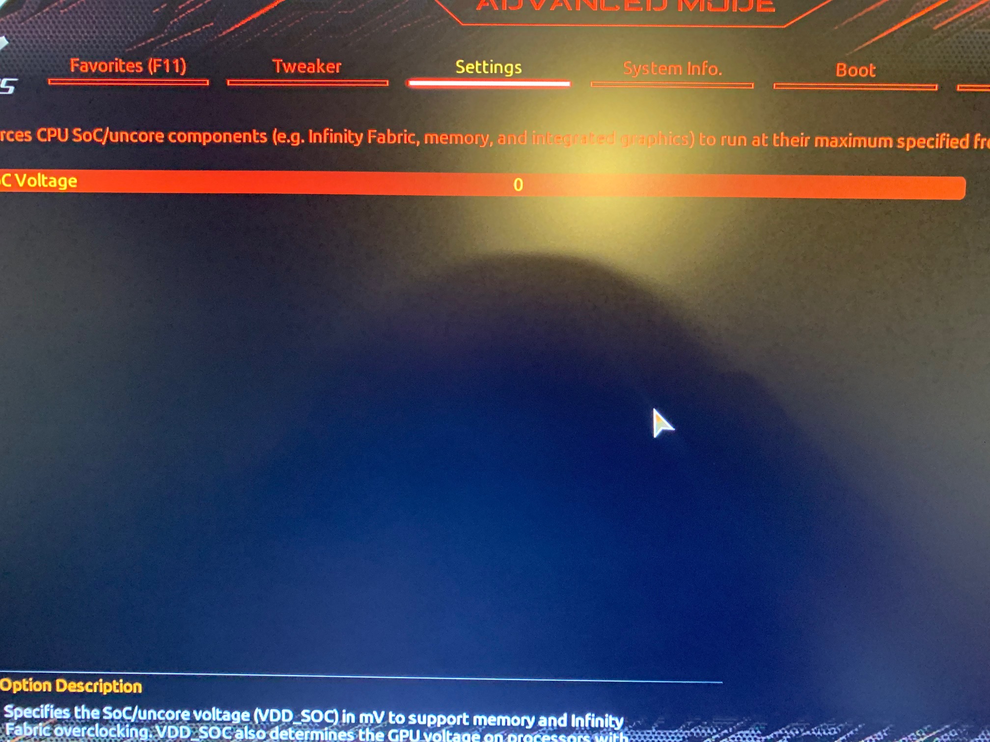 Normalerweise musst du nur für VDDG/VDDP ins AMD OC Menü. Hier trägst du in mV ein, brauchst also keine Kommas. Nicht verwechseln mit dem CLD0_VDDP aus dem tweaker Menü.