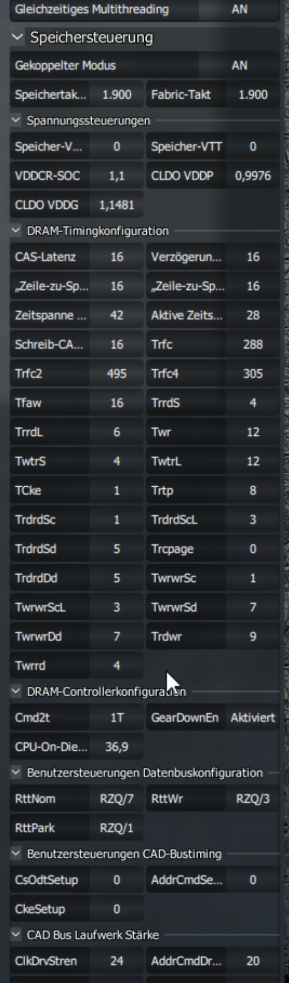 . Ich wollte mich dann dem RAM OC widmen und ein wenig herumspielen. Ich bin ein absoluter Anfänger darin und habe noch nicht so genau die Wechselwirkungen einzelner Parameter verstanden.