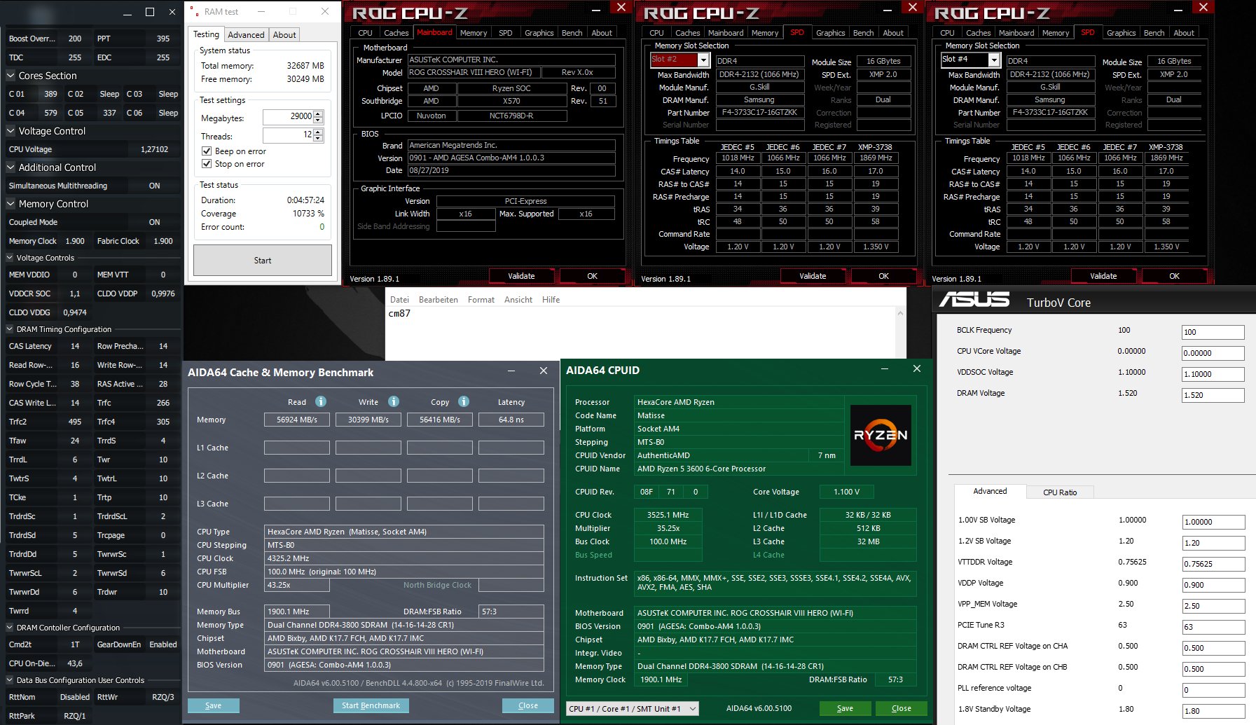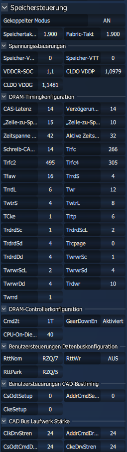 Mit altem 0702er Bios (1003ab) mit 40er oder auch 34er SMU inkl PBO, 200MHz und Scalar 6x laufen die 3800/1900 mit 0,95V VDDG. Ebenso mit 0901er Bios und 40er SMU. Bios Version 0803 war ziemlich verbuggt und nun das neue 1001 mit 1003ABBA braucht inkl PBO und Scalar mehr auf der VDDG.