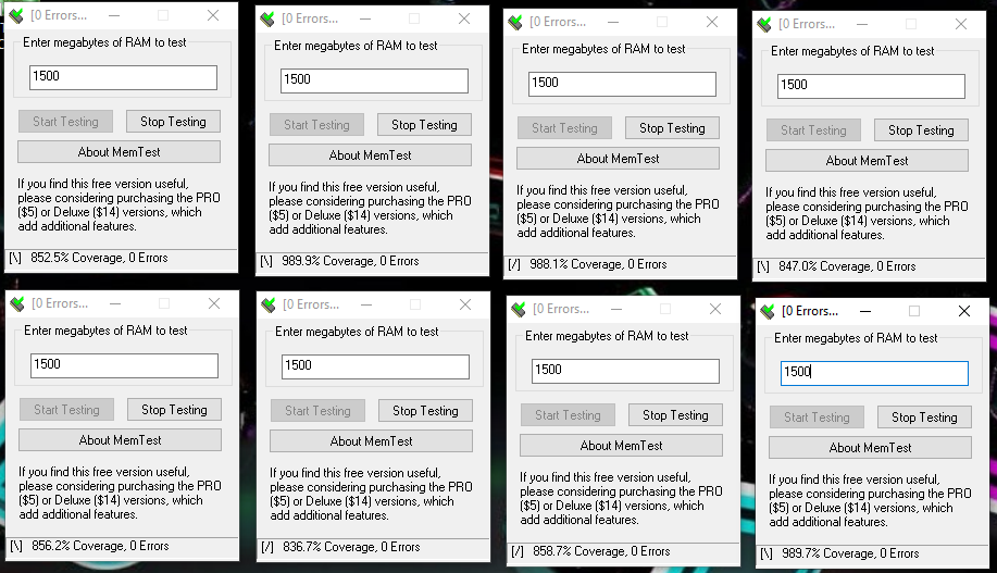 Also Memtest lief jetzt den Nachmittag über durch >800%, 0 Fehler