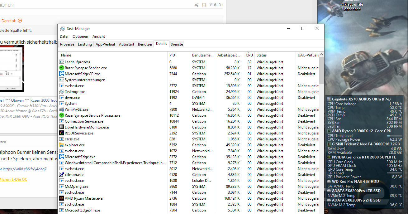 Hat eigentlich noch jemand Probleme mit der Maus- und Tastatursoftware von Razer? Gerade im LibreHardwareMonitor-Overlay gesehen das Load/PackagePower höher als normal sind, und siehe da, mal wieder der Razer Mist...