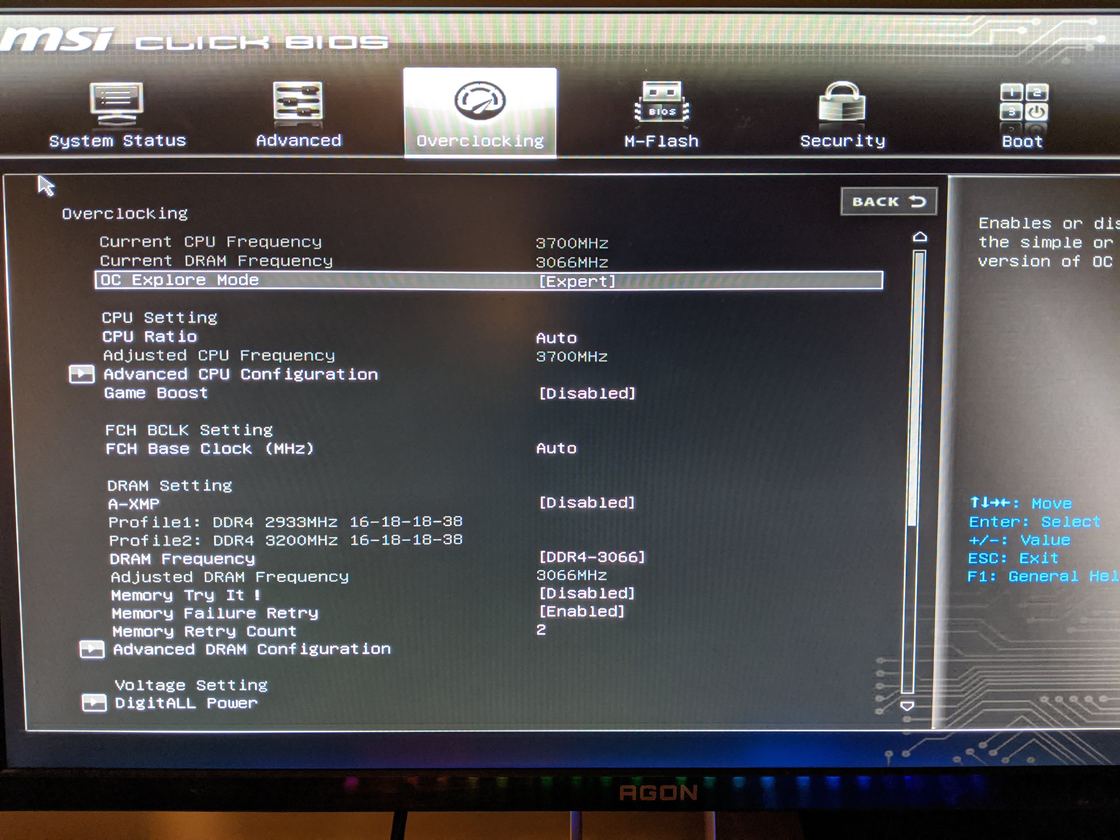 Nachdem ich die Settings allerdings im BIOS vorgenommen habe, bootete mein System nicht mehr. Daher mit Takt schrittweise runtergegangen. Nach einigem Testing habe ich den RAM jetzt bei 3066Mhz stabil bekommen.