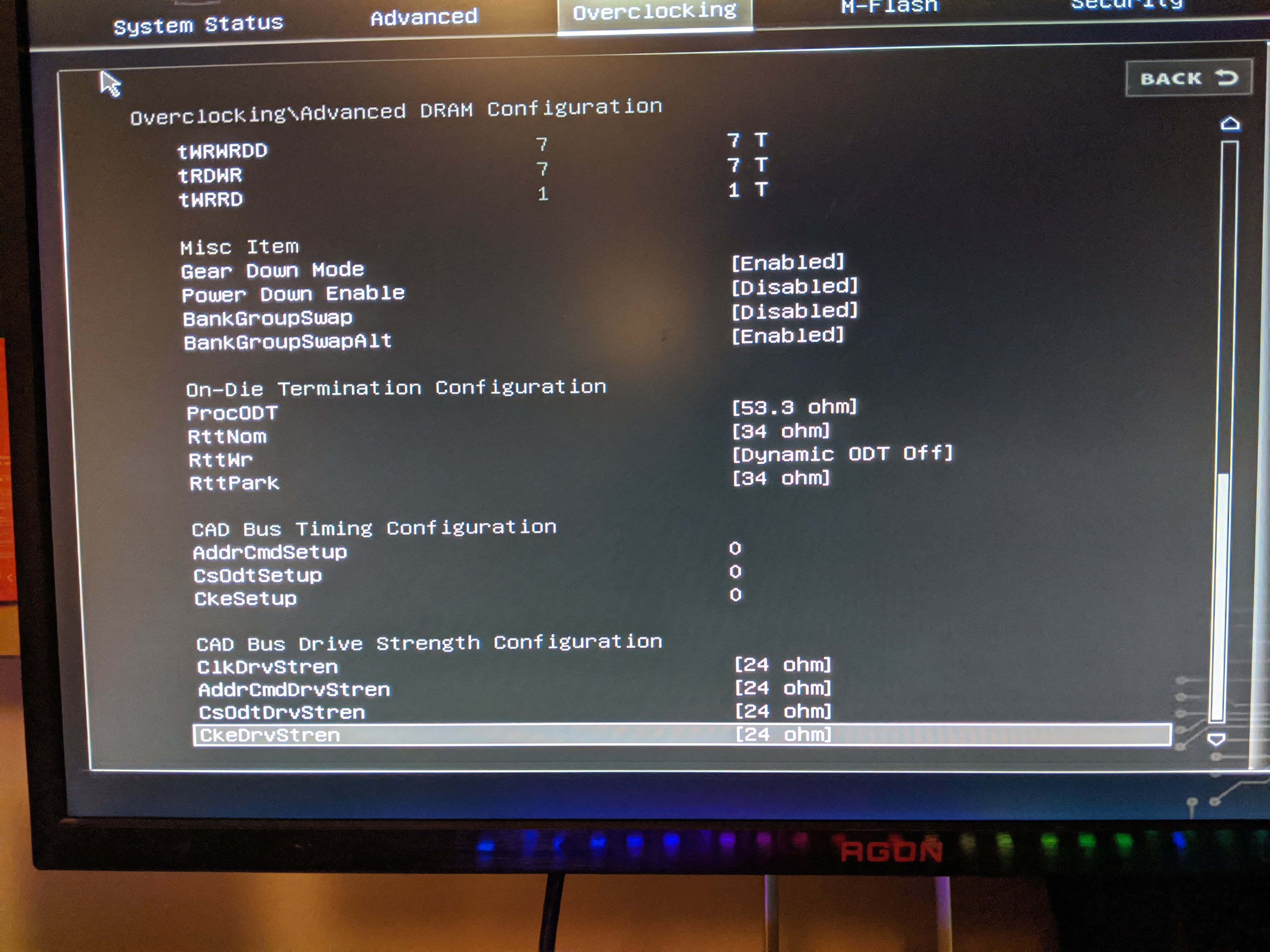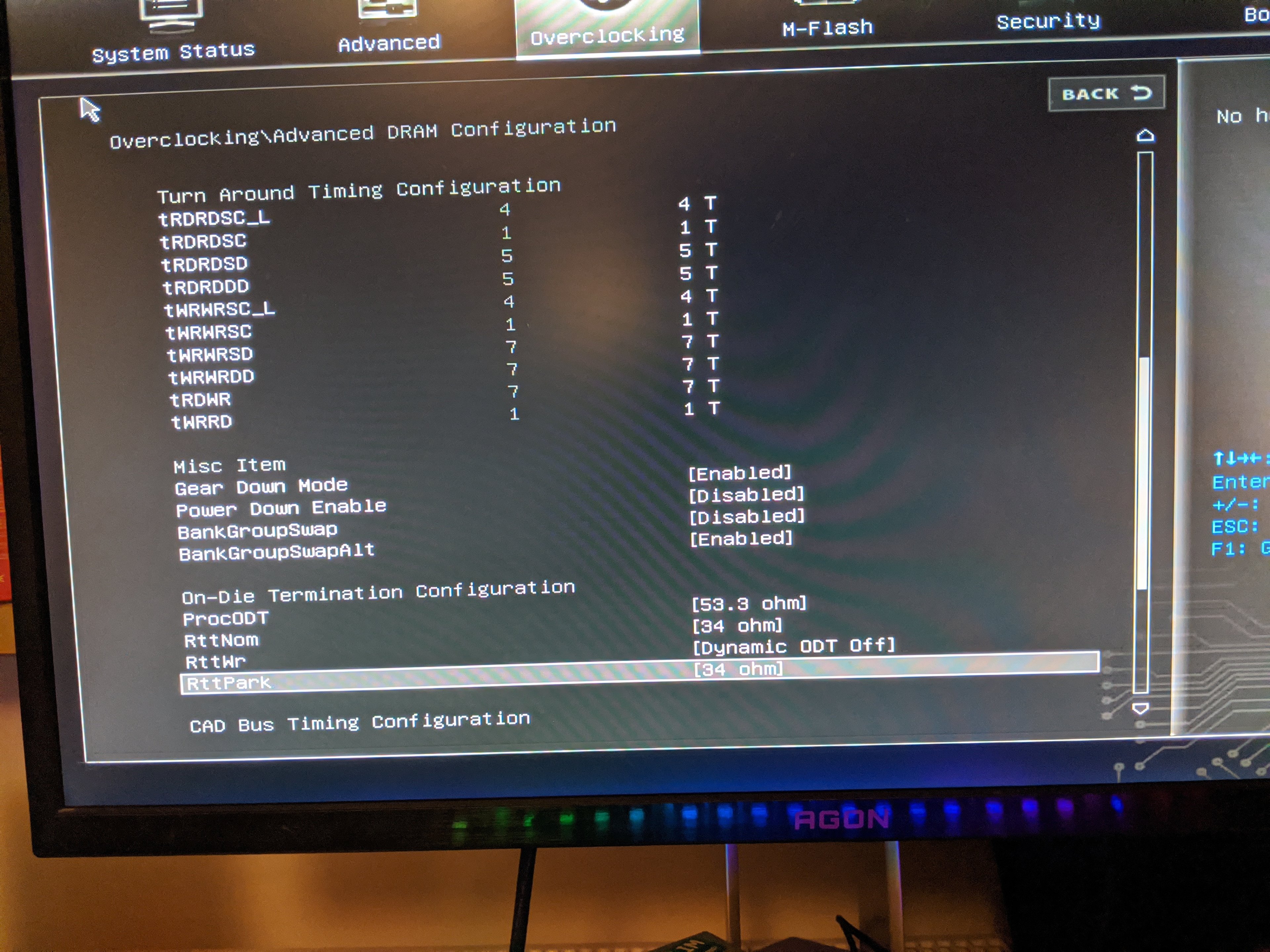 Und Finger weg von den VREF Werten - lass die einfach auf Auto stehen. Zusätzlich unter CommandRate unbedingt GearDownMode auswählen. RttPark auf 40 Ohm.
