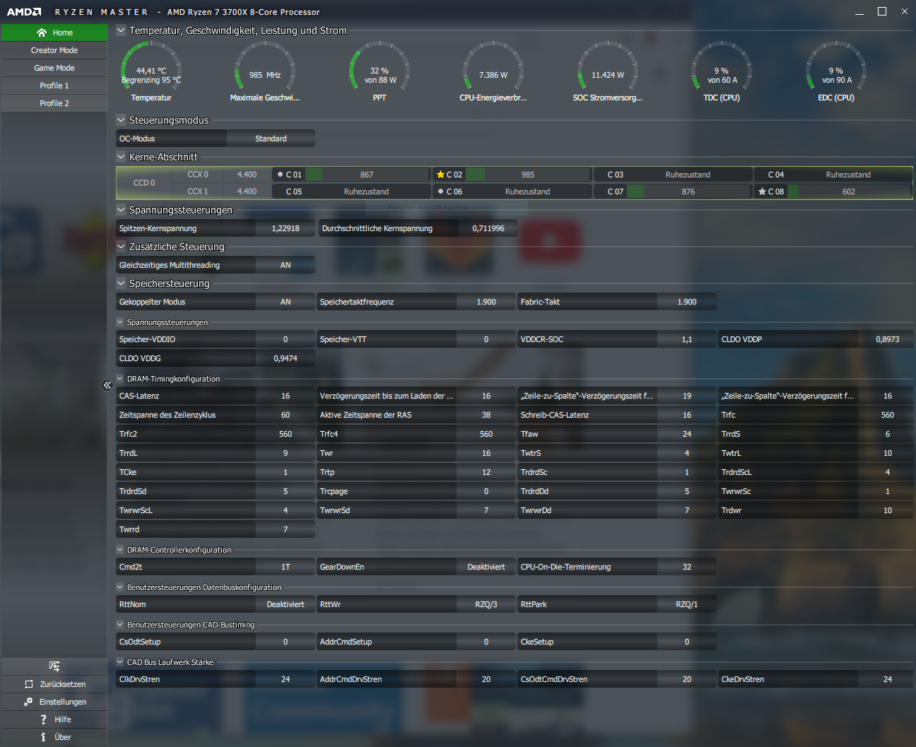 1.1 1900 3800 Scharfe Timings 3800 CL16 ~1,4v 54816 30342 54836 68,1