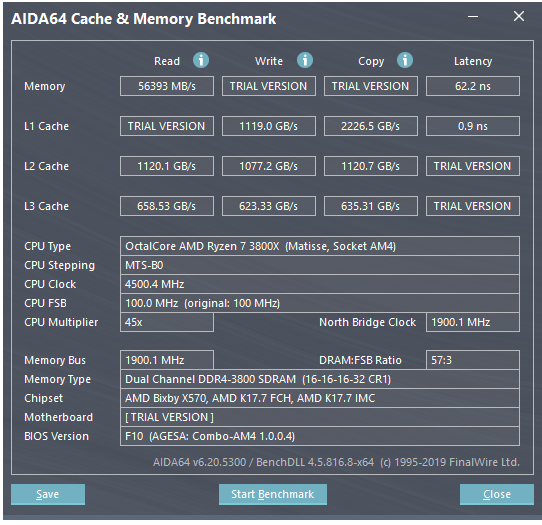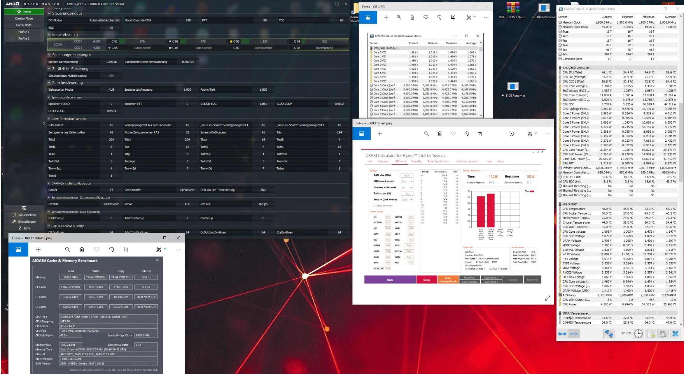 Leider habe ich ZeroCoolRiddler's lasche 3800 CL16 und 3733 CL16 timings nicht stabil zum laufen gebracht. Beim Aida64 Test kommt irgendwann ein Freeze oder Neustart. Ein Anheben vom VDIMM hat die Sache nicht verbessert und bei anderen Einstellungen bin ich zu unsicher.