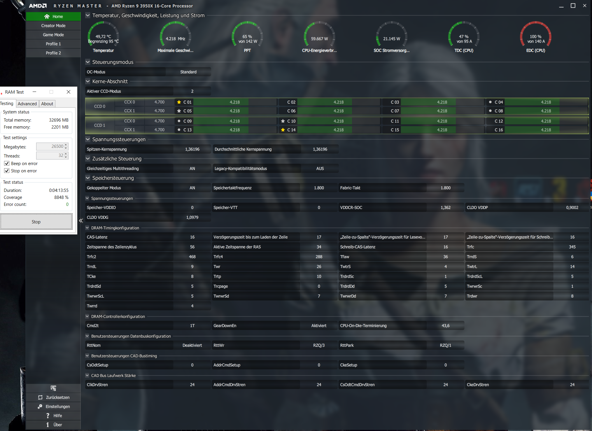 Top, jetzt hats hingehauen. Über 10000% und nach einer kurzen Neustart Pause nochmal >8800% in Karhu stabil. Wenn das jetzt beim encoden und spielen auch stabil ist bin ich zufrieden. @ZeroCoolRiddler