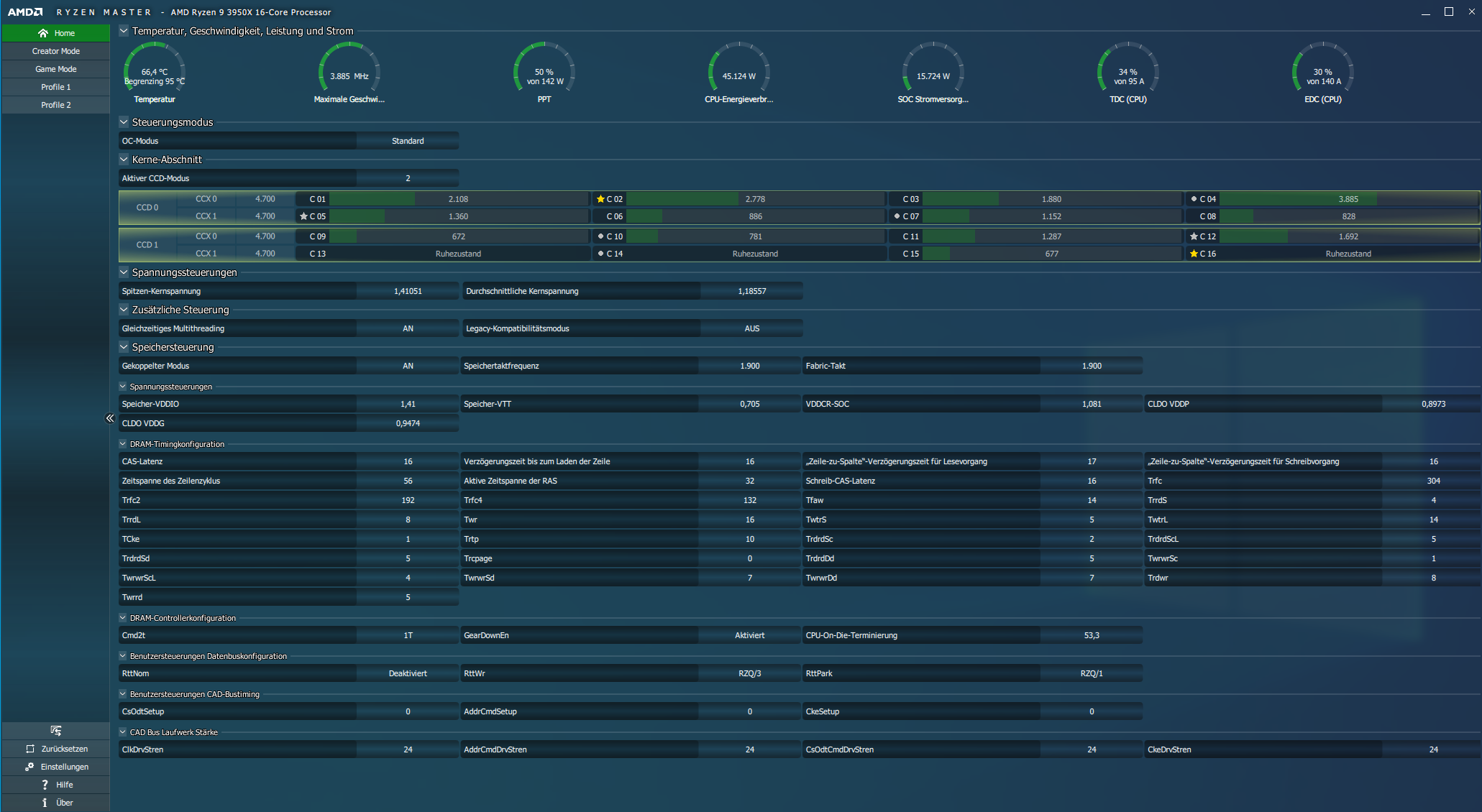 Gear Down Mode ist ein, Soc ist 1.0625, Vdimm ist 1,49 - vddg und vddp sind auf auto - wo am besten drehen damit es auch mit karhu noch stabil wird (sprich ich die 10000% ohne Fehler schaffe)
