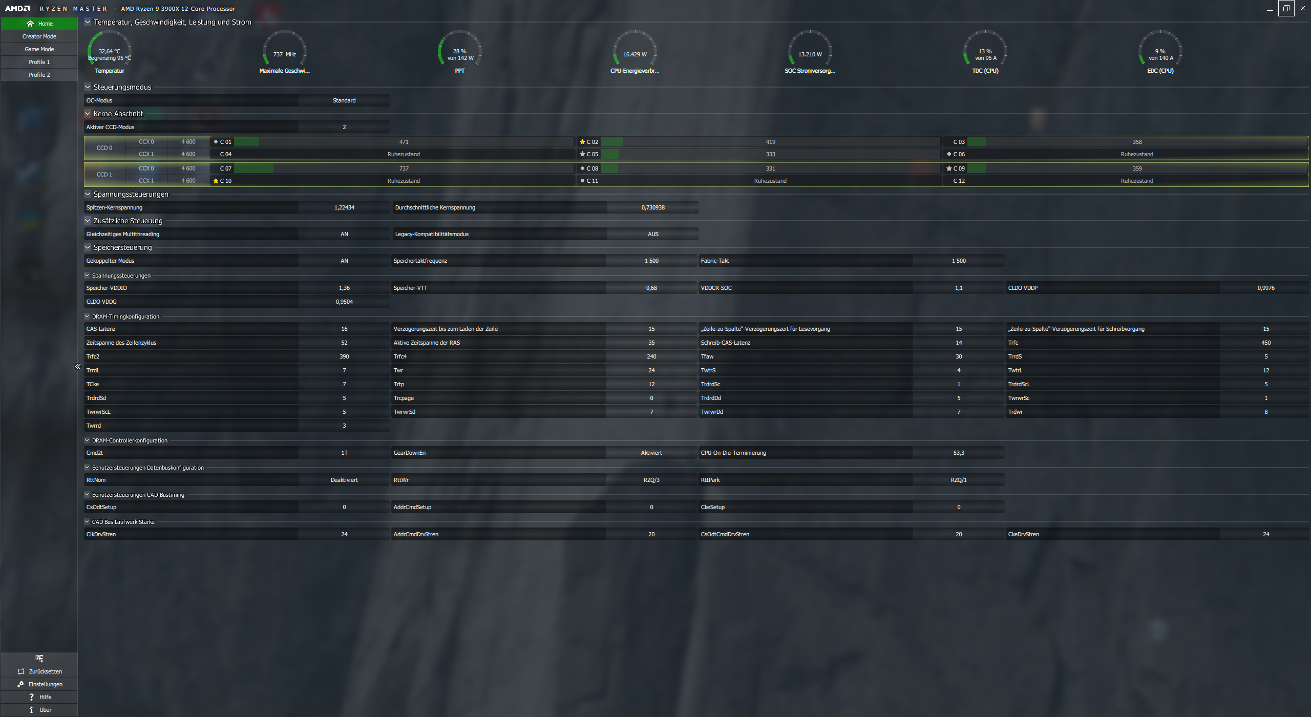 Da kommt es meines wissens mehr auf den IMC an als auf den Ram, denn der steuert ja die ganze schoße. Wenn der IMC mitspielt sind da auch 3800 bie 1900 IF kein Problem. Zu deinen Ram, teste erst mal bei 3000 mit 15er Haupttimings und den Subtimings aus den Calc, Die Spannungen nicht vergessen. Auch gleich die Wiederstände mit einstellen kann nicht schaden. Wenn das dann anständig läuft gehts dann mit 3200 weiter.Patata schrieb:und weis man eigentlich wie stark der Nachteil ist wenn man 4 RAM Riegel verwendet?