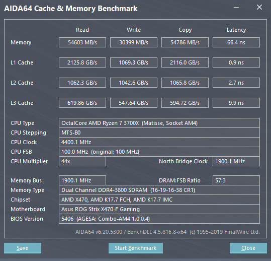 Generell bin ich zufrieden, muss ja nicht immer 3800 gehen. Hab 52088MB/s read bei - leider - 70,8ns lt. AIDA. Beim Membench von 1usmus im Calculator bin ich von anfangs 129,88s auf 119,54s runter durch die strammeren Subtimings. Latenz dort 68,1/71,9ns.