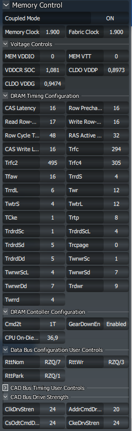 Hallöchen, ich habe einen Ryzen 3900x, das Gigabyte X570 Aorus Master und 4x 16GB Micron-E Die. Da Du auch 64Gb davon in Betrieb hast, wollte ich mich grob an Deinen 3800er-Werten orientieren und sie ein bisschen entschärfen, damit sie auch garantiert stabil laufen. Orientiert habe ich mich nicht nur daran, sondern natürlich auch an den Timings von
